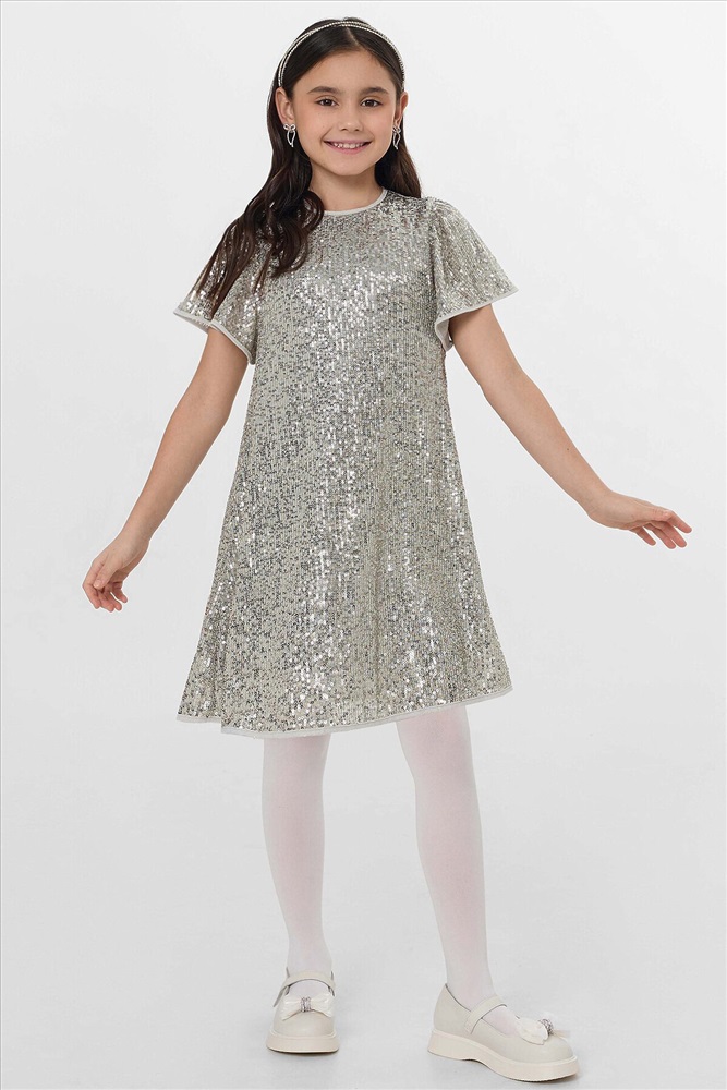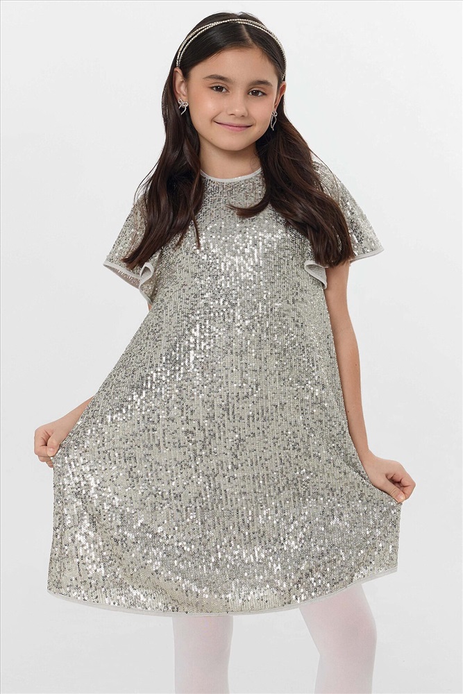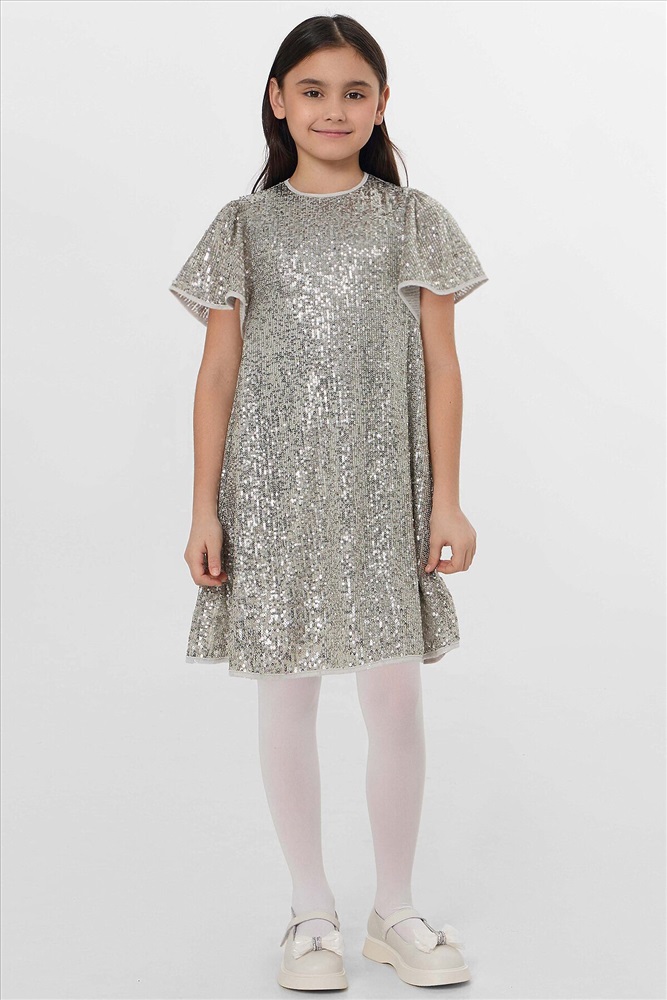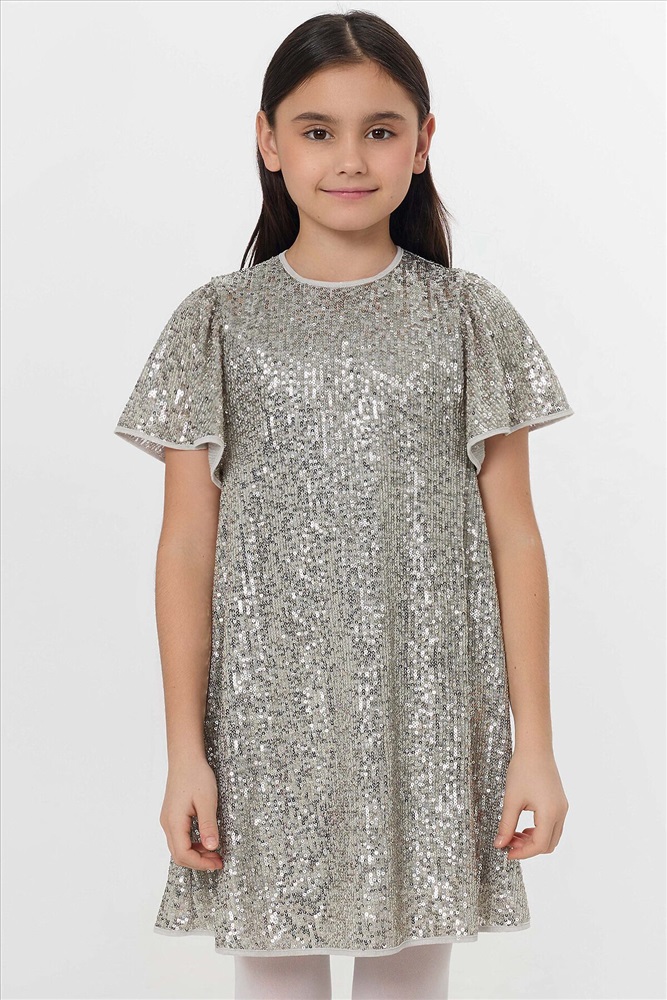 ID товара: 1227718 Состав: верх- 95% полиэстер; 5% эластан; подкладка- 92% хлопок; 8% эластан Сезон: Демисезон Рукав: короткие Вид застежки: Пуговицы Вырез горловины: Круглый Тип карманов: Без карманов Декоративные элементы: Без элементов Конструктивные элементы: Нет Уход: Деликатная стирка при 30 градусах Фактура материала: Кулирное полотно+сетка Страна бренда: Беларусь Страна производства: Беларусь Платье с пайетками — это праздник в каждой детали. Его силуэт мягко облегает фигуру и расширяется книзу, создавая изящный А-силуэт. Платье полностью покрыто переливающимися пайетками, которые играют светом при каждом движении. Верх платья выполнен из полиэстера с добавлением эластана, что обеспечивает материалу легкое растяжение, упругость и помогает пайеткам надежно держаться. Подкладка из хлопка с эластаном гарантирует воздухопроницаемость, мягкость и комфорт в течение всего дня, позволяя свободно двигаться и танцевать. Это платье станет идеальным нарядом для первого выпускного, яркого дня рождения или волшебного новогоднего утренника. В нём ваша принцесса превратится в главную героиню праздника, а сияющий образ и лёгкость кроя подарят ей радость и уверенность, которые запомнятся навсегда. Комментарии к товару