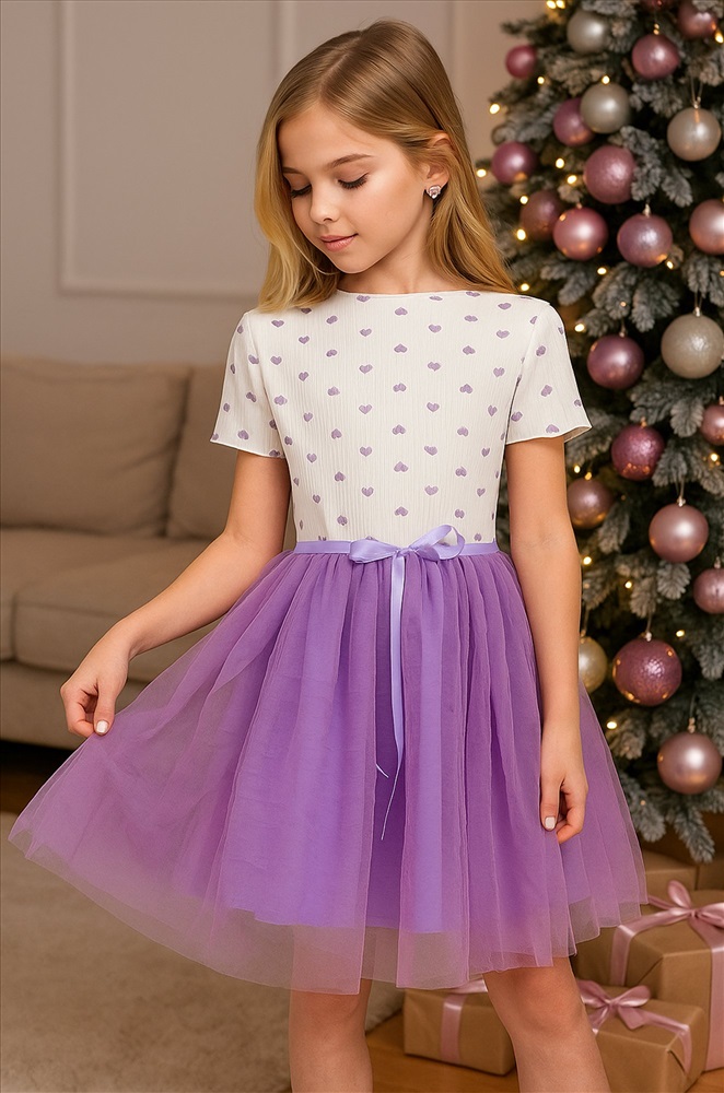 Бело-сиреневое платье — это нежность, уют и торжественность в одном образе. Вечернее воздушное платье идеально подойдет для выступлений в садике или празднования Нового года.