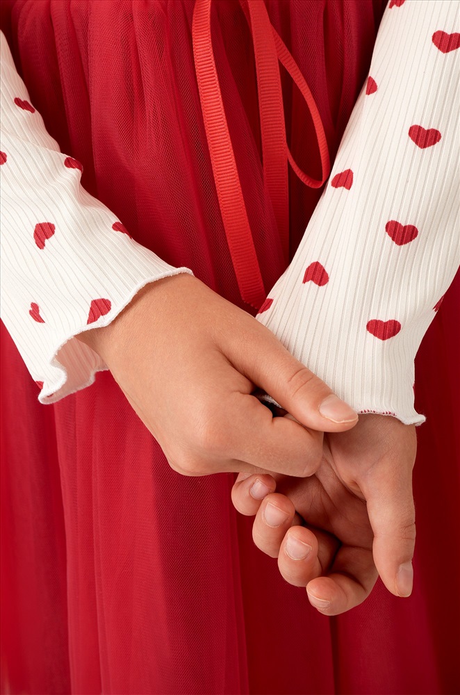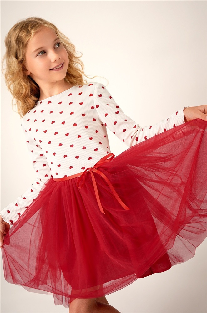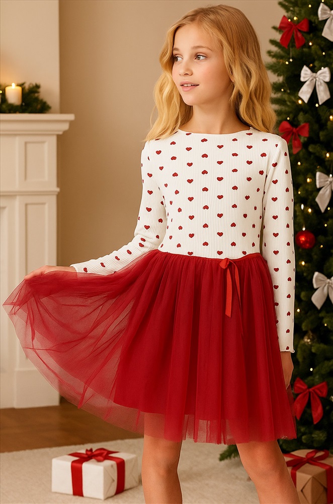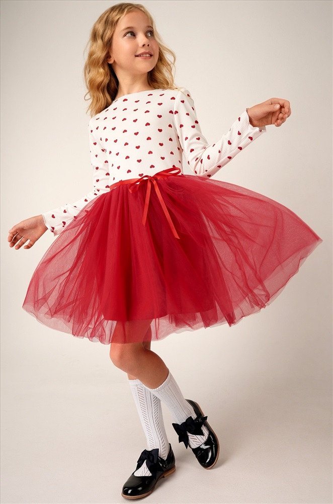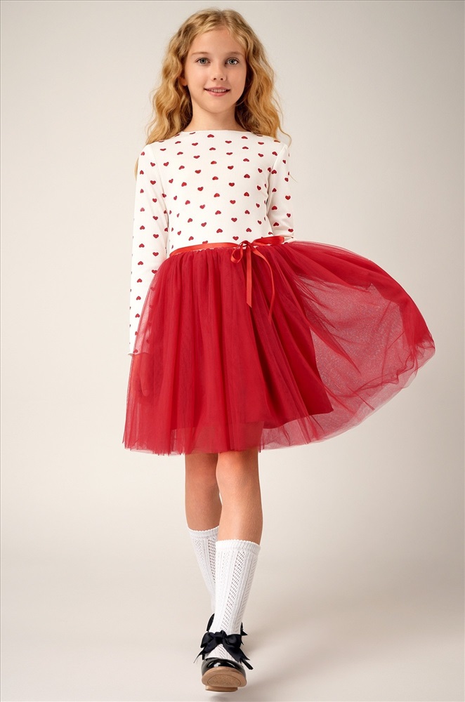 Красно-белое платье — это нежность, уют и торжественность в одном образе. Вечернее воздушное платье идеально подойдет для выступлений в садике или празднования Нового года.