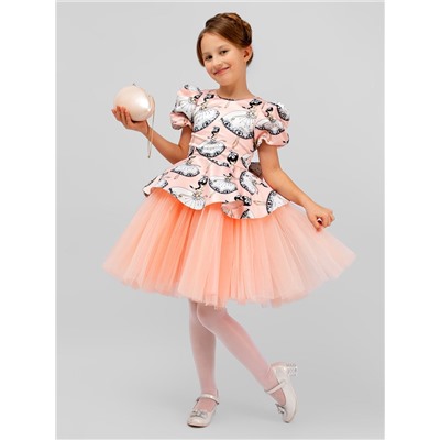 Платье для девочки Соль&Перец. Нарядное платье для девочки отличается особым шармом и элегантностью. Верх платья выполнен из качественной атласной ткани, которая обеспечивает комфорт и долговечность. Пышная и воздушная юбочка сделана из фатина с добавлением атласного подклада, что придаёт платью дополнительную легкость и объём. Платье застёгивается сзади на молнию, что позволяет быстро и легко одеть или снять его. Кроме того, платье дополнено съёмным бантом. Яркий принт на платье делает его идеальным выбором для праздников, торжеств и других особых случаев.