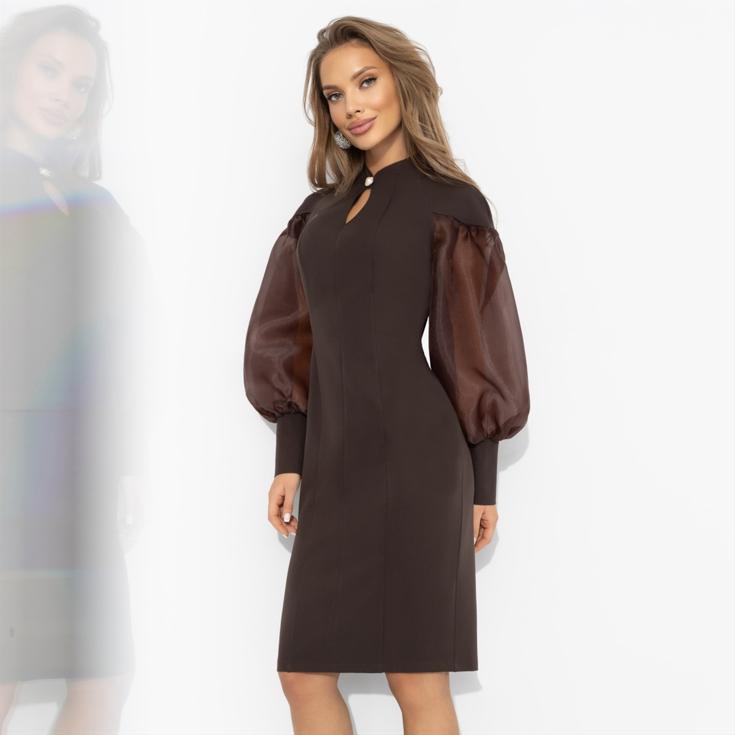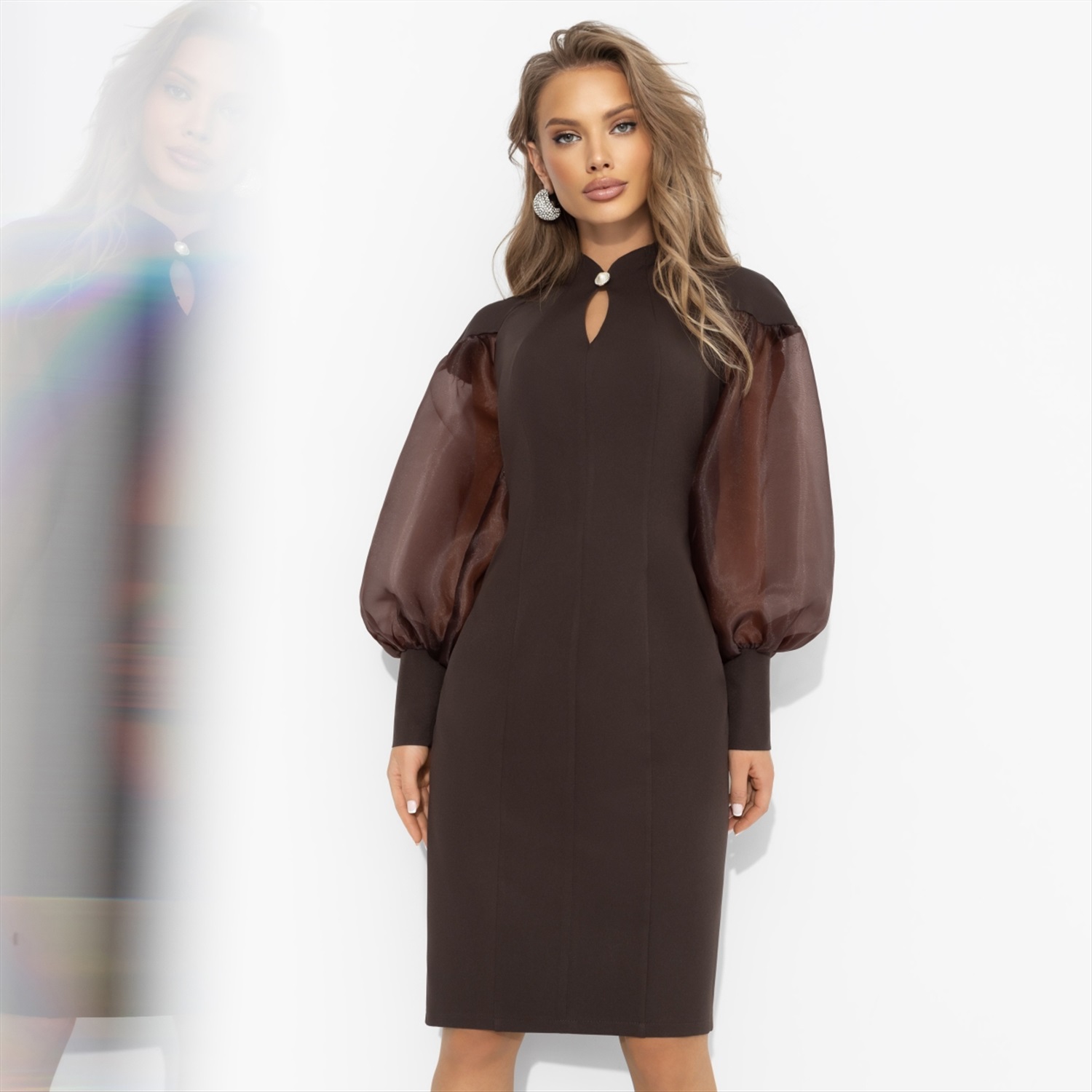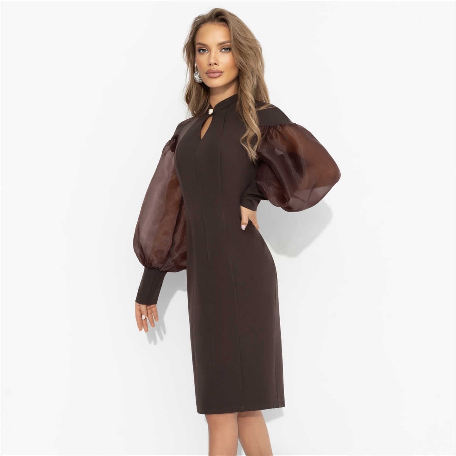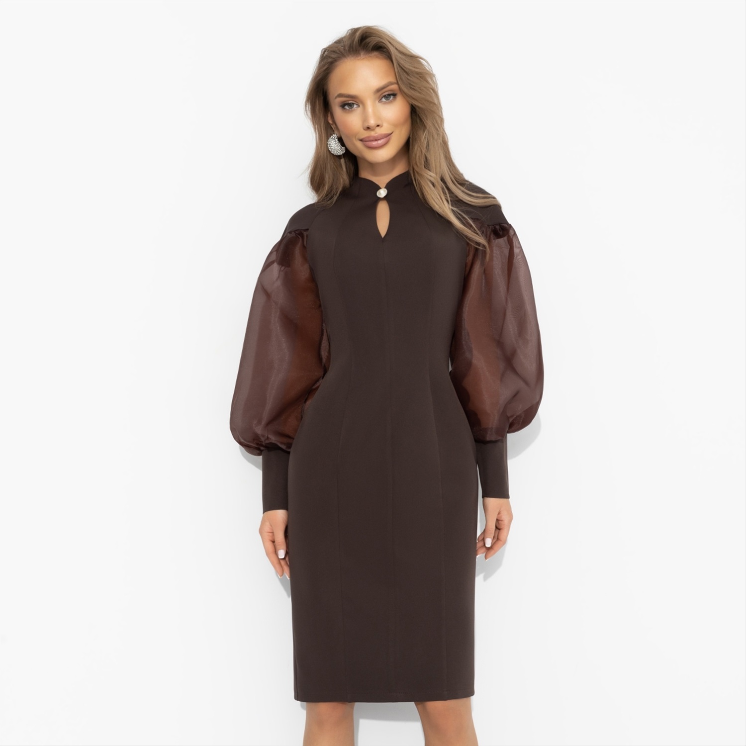 Состав: Костюмная ткань «пикачу» (95% п/э, 5% эластан) Плотность ткани: Средняя Тип ткани: Текстиль Вид застежки: Молния Карманы: Нет Основной цвет ткани: Коричневый Отрезная талия: Нет Подклад: Нет Резинка по талии: Нет Рисунок/раппорт: Нет, все изделия идентичны Сезон: Круглогодичный Силуэт: Приталенный Она любит сладкую жизнь: пару долек молочного шоколада, ароматный капучино и комплименты без повода. В этом платье ЧАРУТТИ все удовольствия будто кристаллизуются вокруг нее ‒ останется просто наслаждаться вниманием и заботой. Платье из костюмной ткани «барби» в благородном шоколадном оттенке держит форму и притягивает взгляды. Прозрачные объемные рукава, элегантная горловина-капелька с элегантной застежкой. Для тех, кому важны детали и вкус к жизни! Комментарии к товару