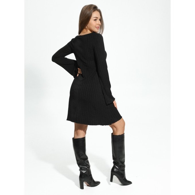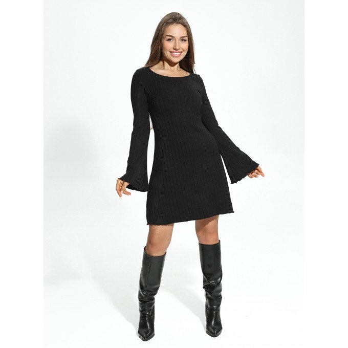 Платье из лапши с широким рубчиком, приталенное с длинным, втачным, расклешенным к низу рукавом. Комментарии к товару
