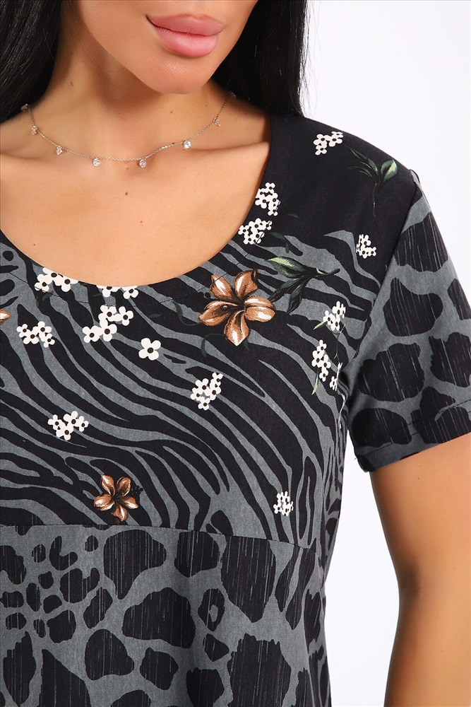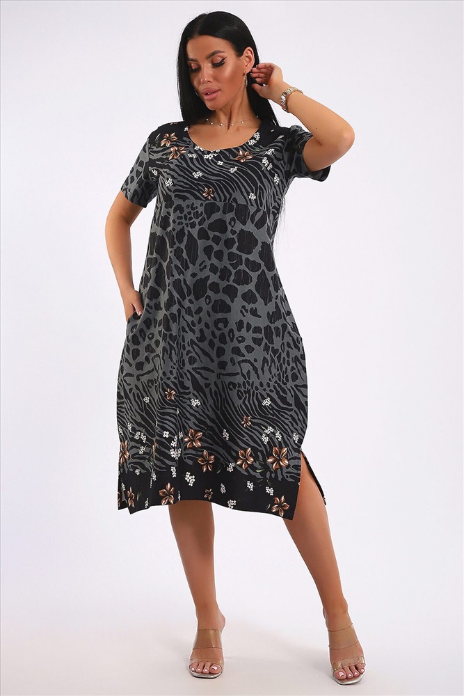 Производитель: НАТАЛИ ID товара: 1115535 Состав: Хлопок 100% Сезон: Весна/Лето Длина: Миди Фасон: Свободный Рукав: короткие Вырез горловины: Округлый Рисунок: Анималистичный Тип карманов: В шве Декоративные элементы: Разрезы Основная ткань: Хлопок Стиль: повседневный Вид ткани: Кулирка Страна бренда: Россия Страна производства: Россия