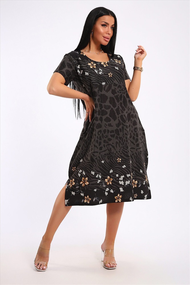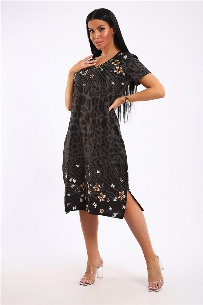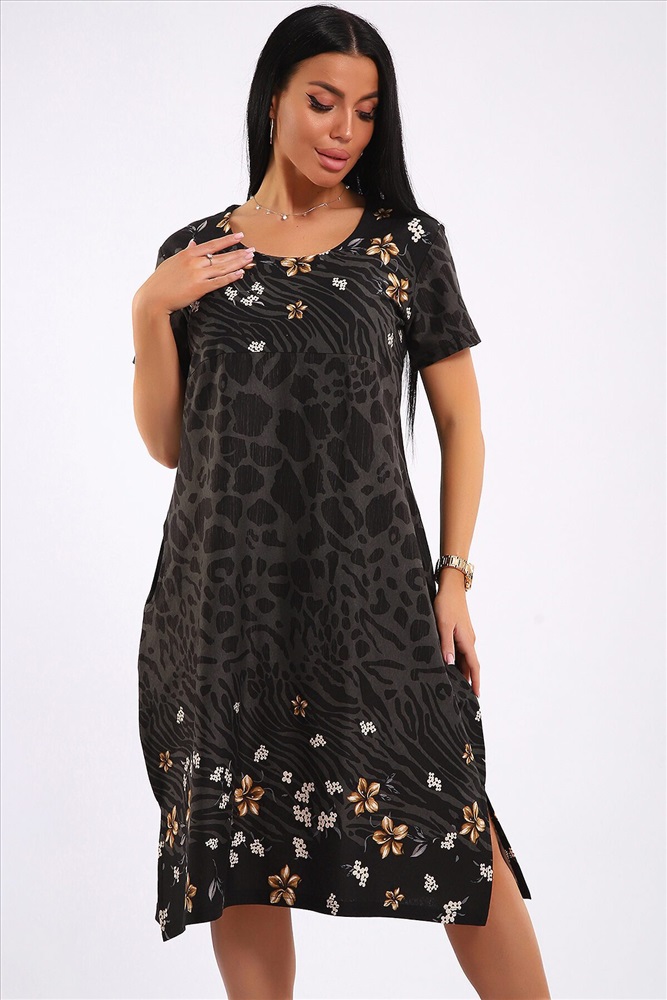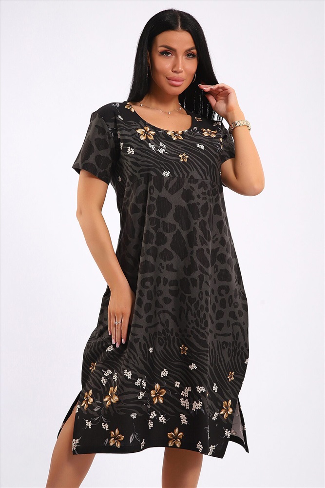 Производитель: НАТАЛИ ID товара: 1115536 Состав: Хлопок 100% Сезон: Весна/Лето Длина: Миди Фасон: Свободный Рукав: короткие Вырез горловины: Округлый Рисунок: Анималистичный Тип карманов: В шве Декоративные элементы: Разрезы Основная ткань: Хлопок Стиль: повседневный Вид ткани: Кулирка Страна бренда: Россия Страна производства: Россия