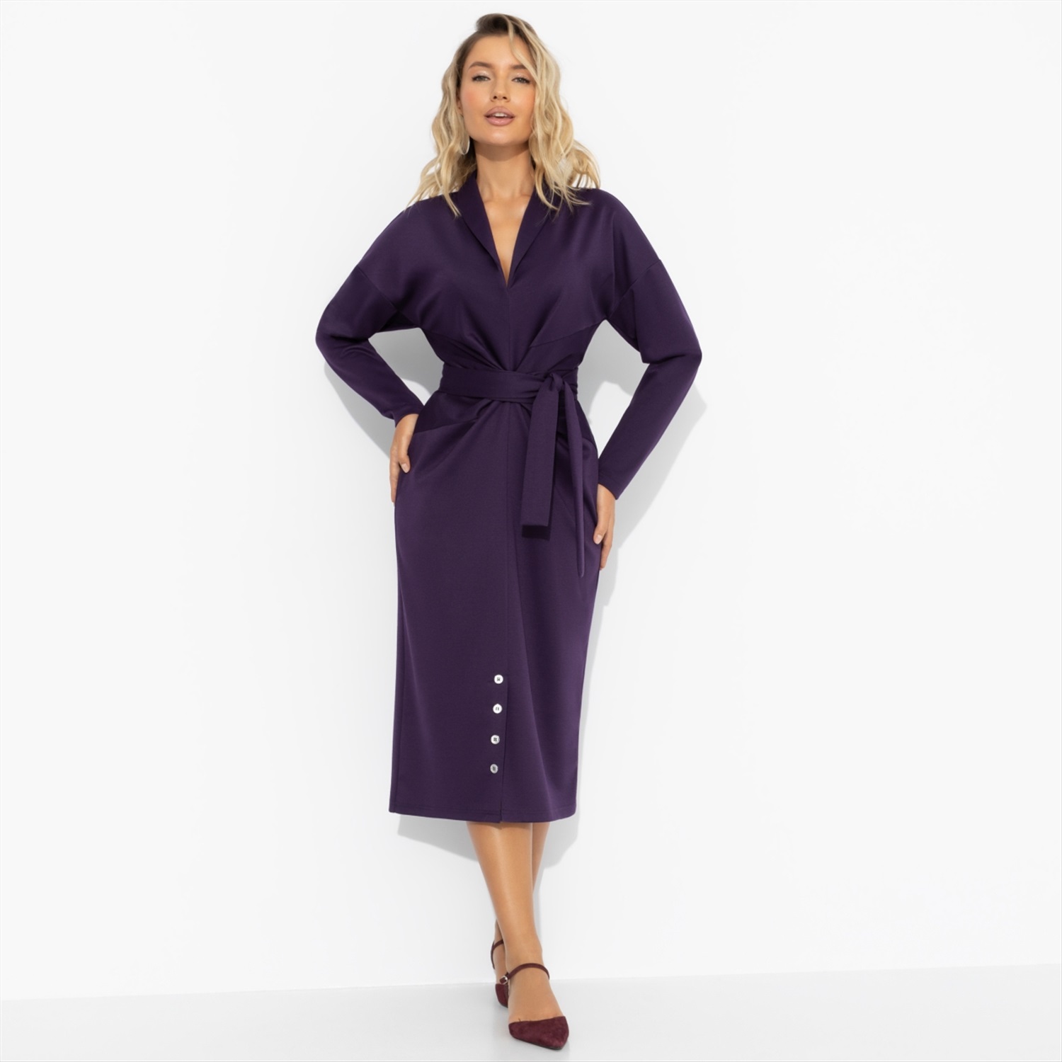 Состав: «Трикотаж лакоста» (65% полиэстер, 30% вискоза, 5% спандекс) Плотность ткани: Плотная Тип ткани: Трикотаж Вид застежки: Нет Декоративные элементы: Драпировка Дополнительный цвет ткани: Нет Карманы: Нет Основной цвет ткани: Фиолетовый Отрезная талия: Нет Подклад: Нет Резинка по талии: Нет Рисунок/раппорт: Нет, все изделия идентичны Сезон: Зима Силуэт: Прямой Платье ЧАРУТТИ станет ярким свидетелем его первого признания в любви. Взгляд на тебя изменится навсегда. В нем запечатлеется немое восхищение. Платье можно сохранить как семейную реликвию и рассказывать эту историю потом вашим детям. Платье с лацканами в длине миди приталенного силуэта. Есть пояс в тон основного материала в комплекте. Спущенная линия плеча. Декоративная сборка по центру изделия. Пуговицы внизу платья как декор. Комментарии к товару