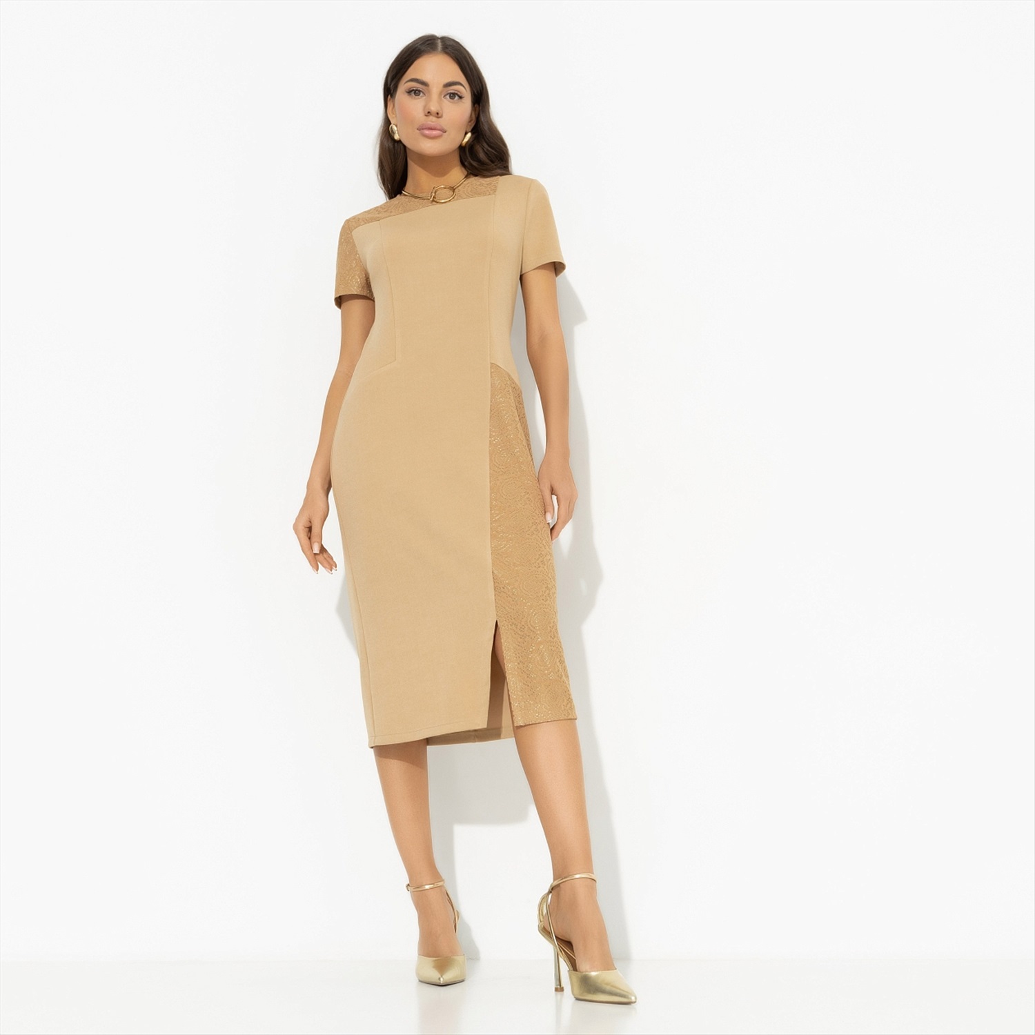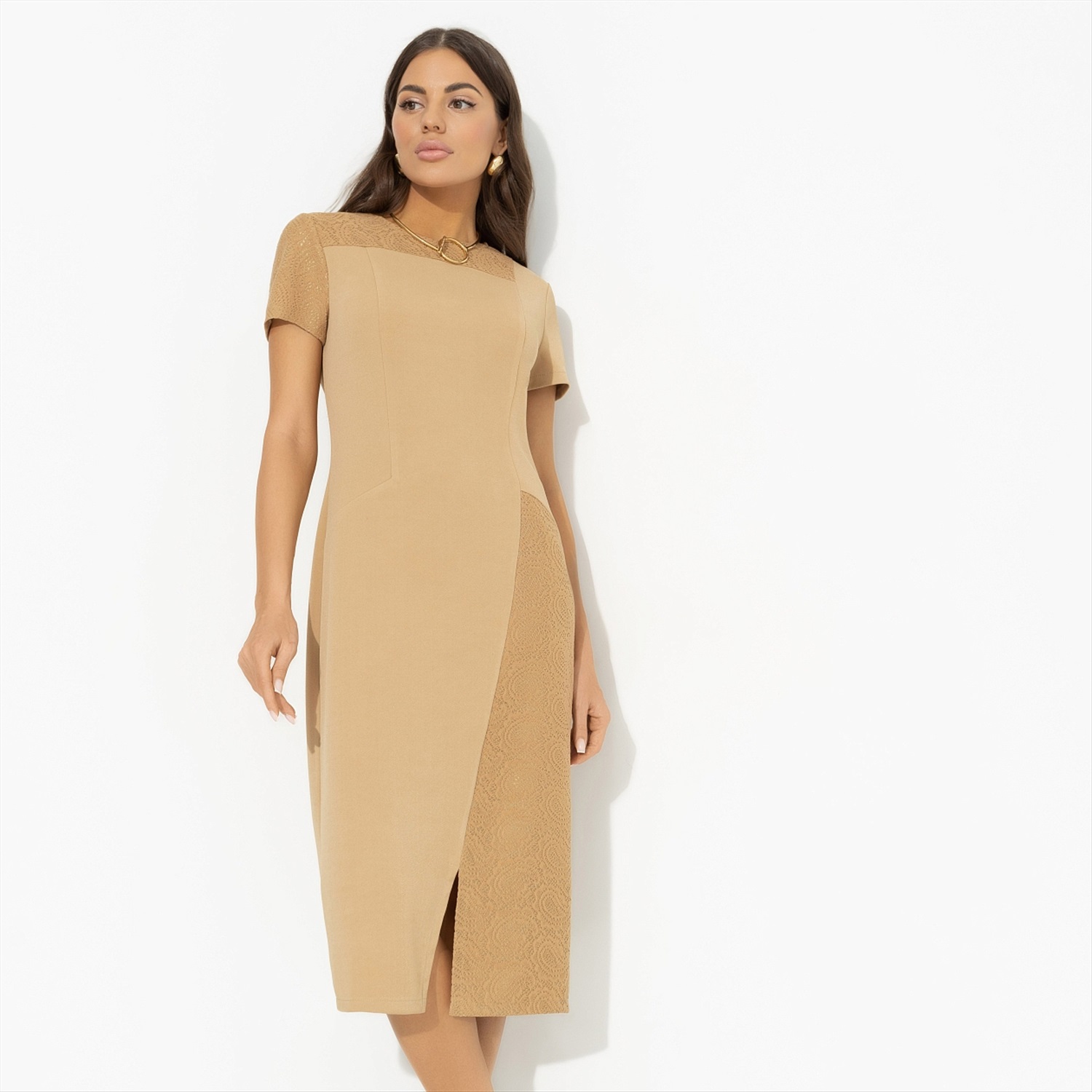 Одну шикарную женщину спросили, в чем секрет её привлекательности. Она ответила, что просто не помнит, сколько ей лет. Внутренняя свобода выделит вас среди остальных, а платье CHARUTTI подчеркнет все достоинства. Роскошь вне времени. Платье приталенного силуэта. Деликатный разрез спереди. Комбинация двух видов ткани. Миниатюрная застежка-пуговица по спинке изделия.