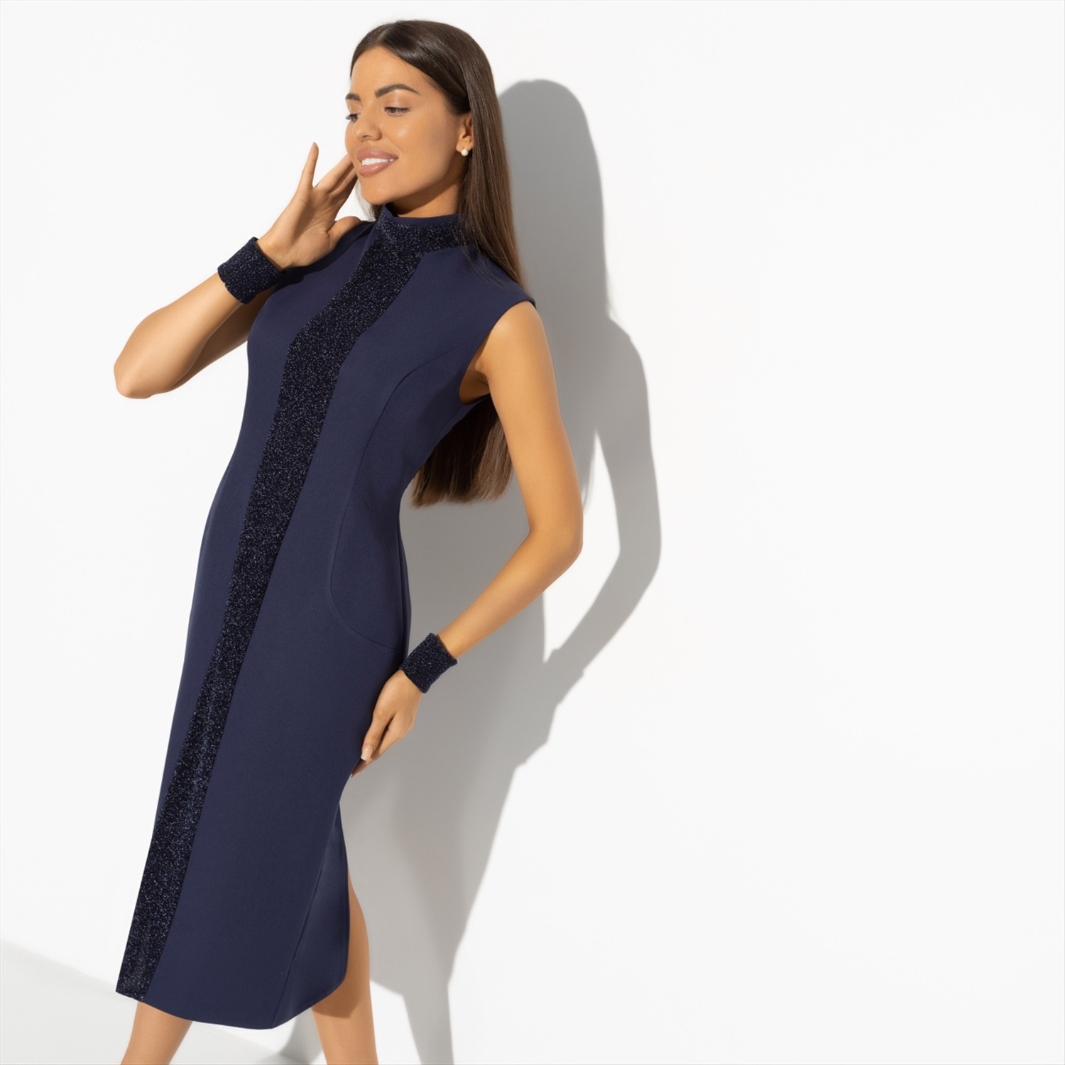 Состав: «Барби» (95% п/а, 5% эластан) Плотность ткани: Средняя Тип ткани: Текстиль Вид застежки: Молния Карманы: Нет Основной цвет ткани: Синий Отрезная талия: Нет Подклад: Нет Резинка по талии: Нет Рисунок/раппорт: Нет, все изделия идентичны Сезон: Круглогодичный Раньше ты думала, что смелость – это прыгнуть с парашютом, покорить Эверест или нырнуть с аквалангом. Позже тебе раскрылась другая смелость. Смелость быть роскошной. Не все к этому готовы, но если ты чувствуешь порыв – выбирай платье от CHARUTTI. Платье в длине миди приталенного силуэта. Воротник-стойка. Центральная линия из акцентного материала с блеском. Платье застегивается на скрытую молнию по спинке изделия. Есть разрез сзади по шву. Съемные манжеты в комплекте. Платье-футляр «Поцелуй удачи (night, с манжетами)» от CHARUTTI — это не просто одежда, это выражение вашей уникальной индивидуальности и смелости быть роскошной. Сделанное из изысканной ткани «Барби», оно окутывает вас мягкостью и комфортом, добавляя нотку шика в ваш образ. Это вечернее платье женское создано для тех, кто не боится привлекать внимание и знает, как важно чувствовать себя уверенно в любой ситуации. Оптом приобретая это платье, вы получаете возможность предложить своим клиентам нечто особенное — возможность быть неотразимой в любой вечер. Длина миди и приталенный силуэт подчеркнут вашу фигуру, создавая эффектный и утонченный образ. Воротник-стойка придаёт платью особый шарм, а центральная линия из акцентного материала с блеском добавляет загадочности. Это платье вечернее женское станет идеальным выбором для торжественных мероприятий, где необходимо выглядеть безупречно. А благодаря скрытой молнии на спинке и разрезу сзади, оно не только красиво, но и удобно в носке. Оптом приобретая это платье, вы сможете удовлетворить потребности самых требовательных клиентов. Съемные манжеты — это ещё один штрих, который делает это платье уникальным. Они позволяют менять облик в зависимости от настроения и события, добавляя элемент игры и креативности в ваш стиль. Это платье женское вечернее идеально сочетается с различными аксессуарами, позволяя вам создать свой собственный, неповторимый образ. Для оптовых покупок это платье предлагает гибкость и возможность удовлетворить разнообразные вкусы и предпочтения ваших клиентов, становясь настоящим хитом в вашем ассортименте. Комментарии к товару