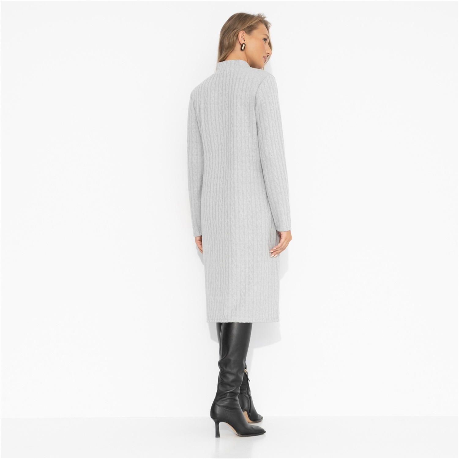 Утро, первые снежинки и аромат кофе. Мягкое вязаное платье обнимает, согревает и подчёркивает спокойную силу внутри. Не спеши – этот сезон создан для тебя. Платье миди длины, выполнено из мягкого вязаного полотна. Силуэт полуприлегающий. Воротник-стойка. Трикотаж приятный к телу, эластичный, сохраняет форму и не образует катышков.