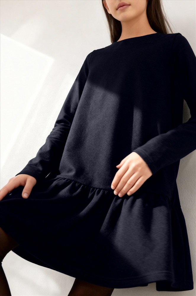 Детское платье для девочек и девочек-подростков создано для стильных и комфортных школьных образов. Темно-синее платье для детей станет универсальным вариантом для школы, прогулок и праздничных мероприятий.