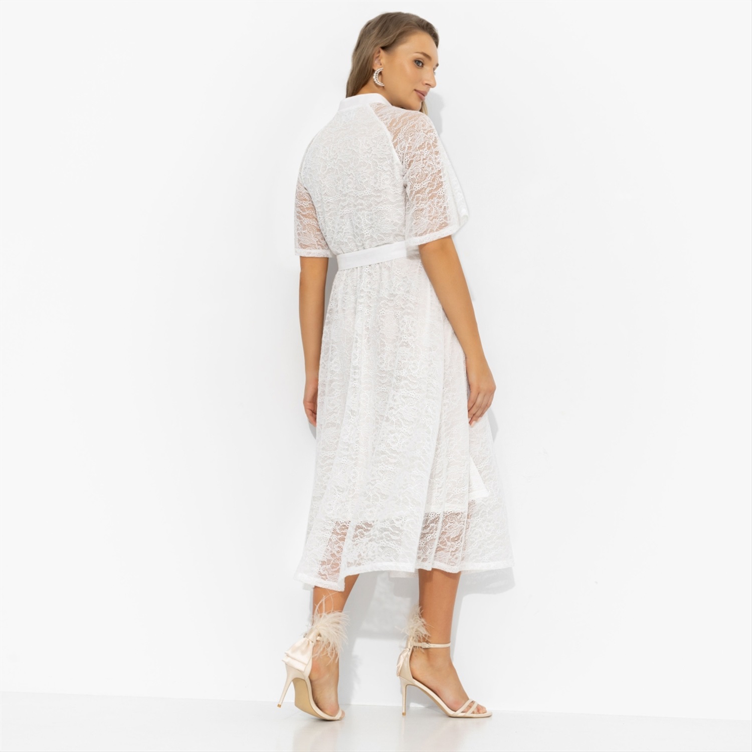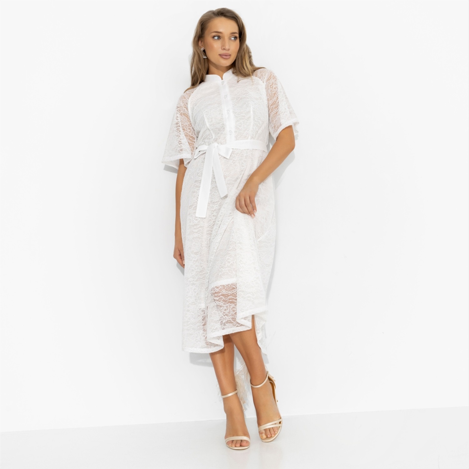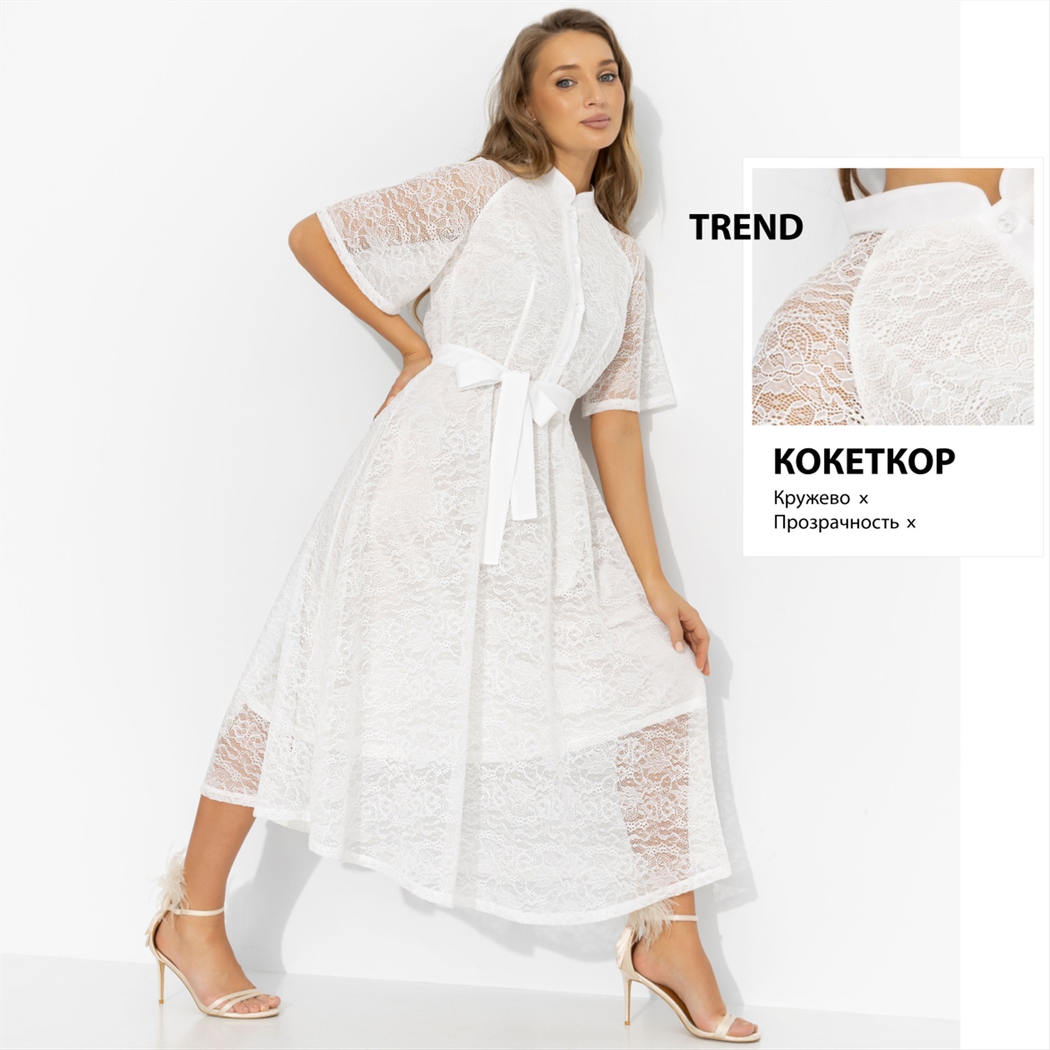 Состав: «Кружево», «креп-шифон», трикотажный подклад (98% п/э, 2% спандекс) Плотность ткани: Тонкая Тип ткани: Трикотаж Вид застежки: Пуговица/-ы Карманы: Нет Основной цвет ткани: Белый Отрезная талия: Есть Подклад: Есть Резинка по талии: Есть Рисунок/раппорт: Нет, все изделия идентичны Сезон: Круглогодичный Силуэт: Приталенный Стиль: Повседневный Параметры модели на фото:
