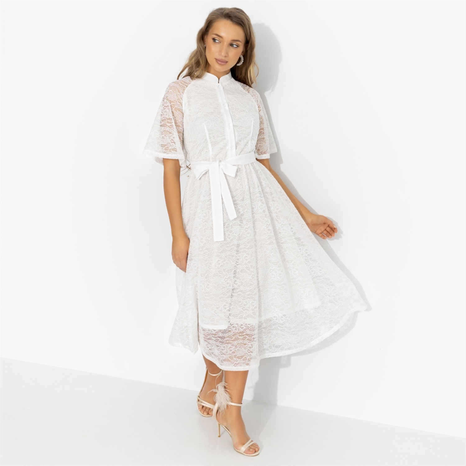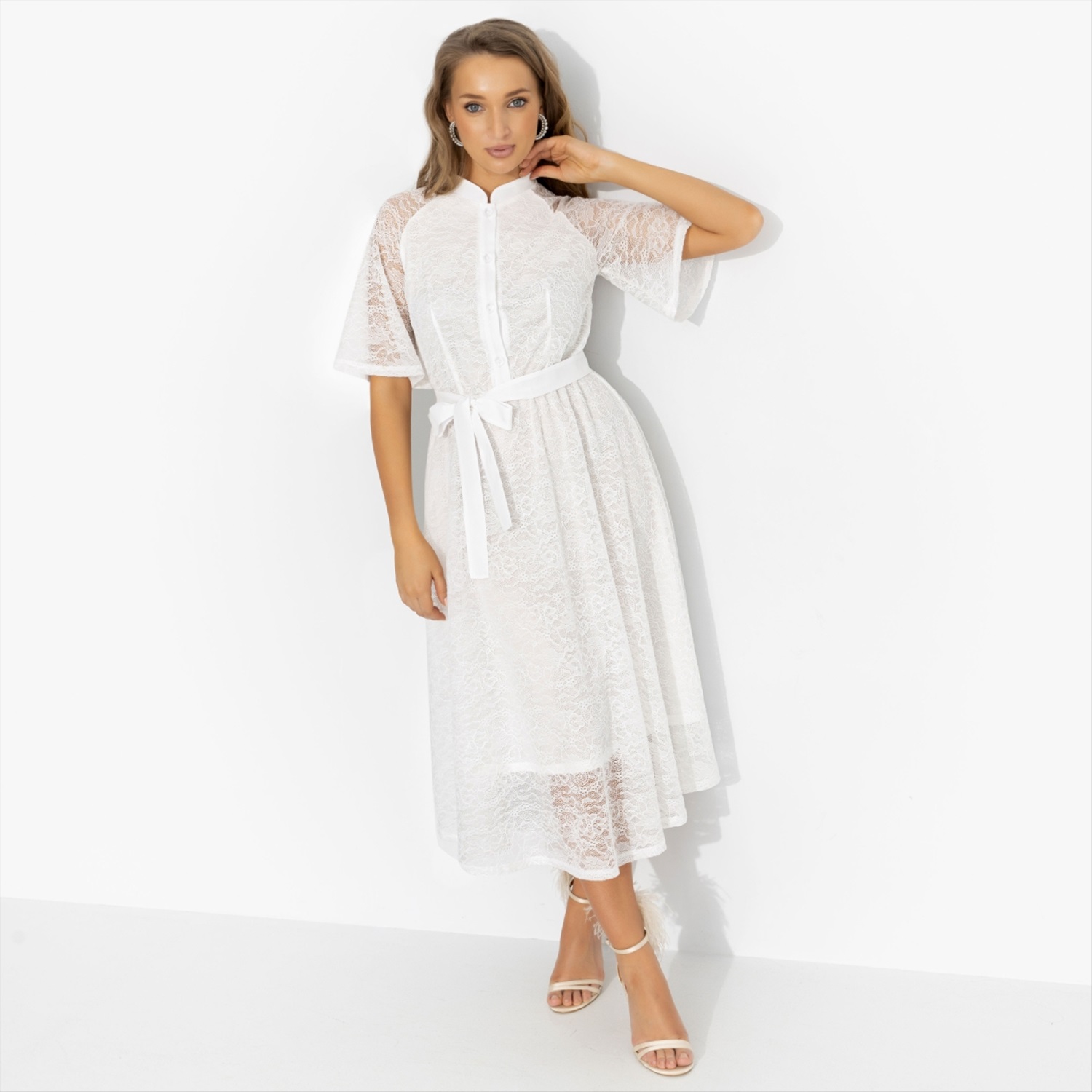 Ты не планировала быть главной героиней, оно как-то само? В этом платье по-другому и не получится. Воздушное кружево, изящный пояс, который подчёркивает талию, мягкая длина миди – всё звучит как лето где-нибудь в Тоскане. Лёгкий объём и прозрачная фактура отсылают к эстетике Dolce & Gabbana, но без излишней театральности. Шаг – лёгкий, взгляд – уверенный. Итальянская история начинается красиво. Комментарии к товару