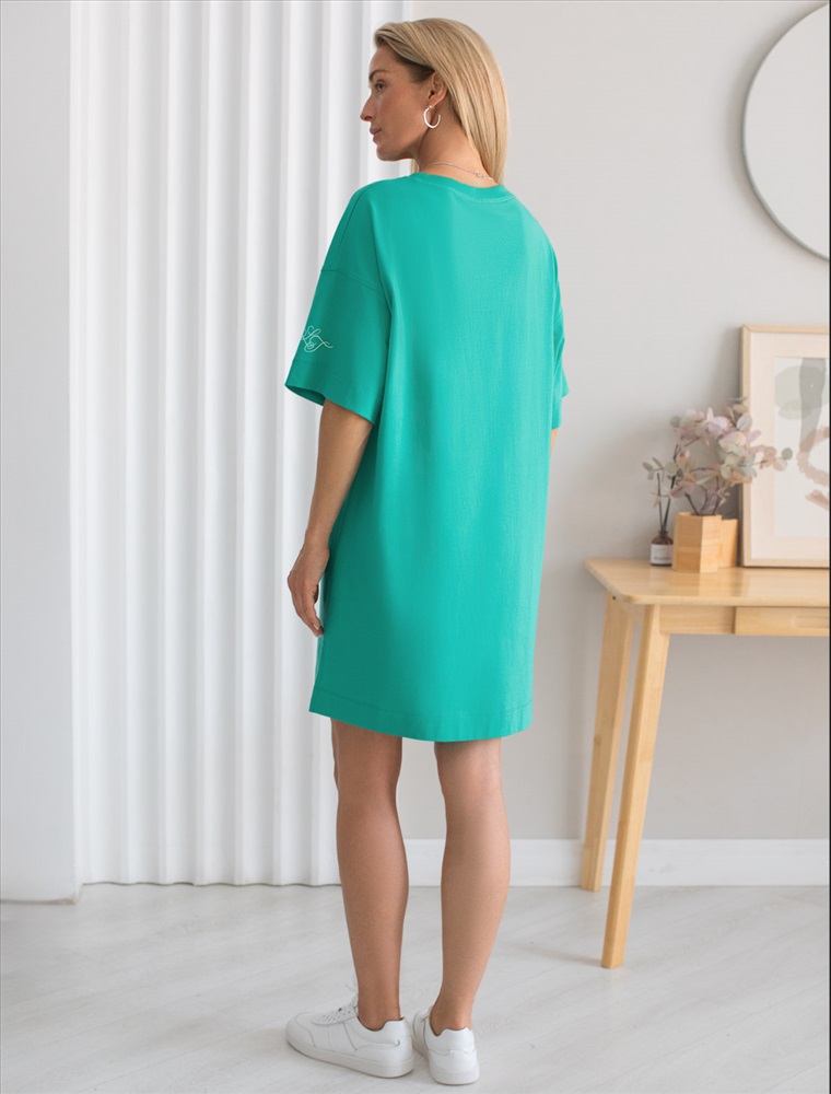 Платье из премиального хлопка станет идеальным выбором для создания комфортного и стильного образа. Ткань приятна к телу, отличается мягкостью и позволяет коже дышать, обеспечивая максимальный комфорт в течение всего дня. Свободный крой дарит свободу движений, подчеркивая непринужденность стиля, а аккуратная вышивка на рукаве и небольшой разрез внизу платья добавляют утонченности. Благодаря сочетанию натуральных волокон с эластаном, изделие формоустойчиво и сохраняет первоначальный вид после многочисленных стирок. Лаконичный дизайн делает это платье универсальным вариантом на любой случай.