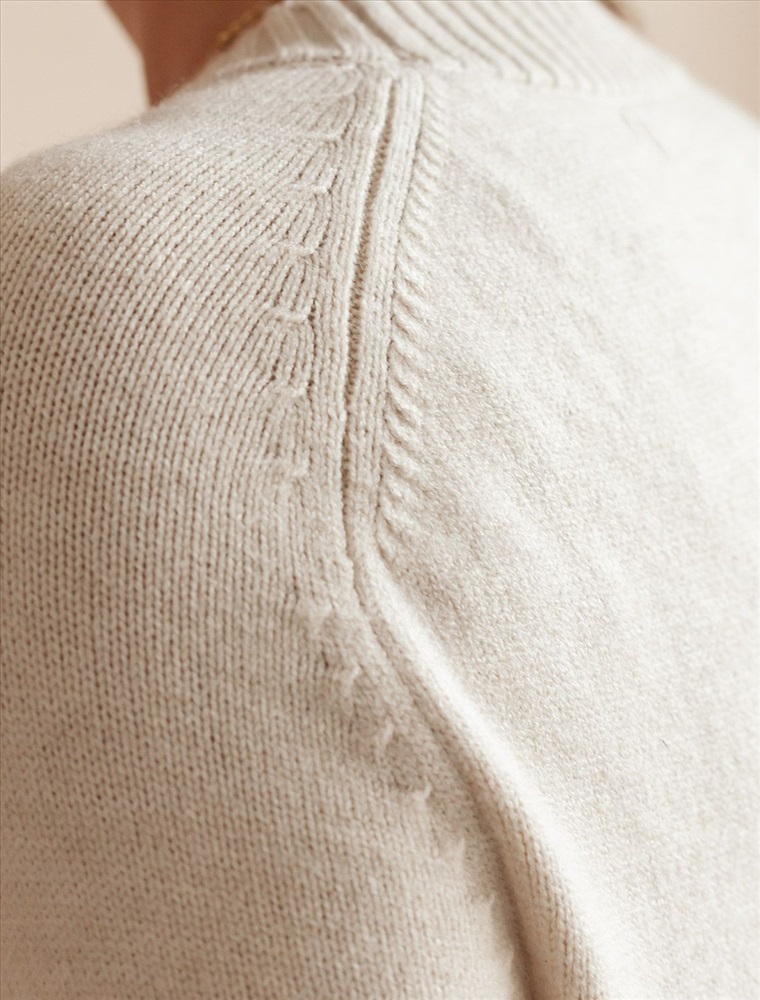 Платье длины миди выполнено из мягкой меланжевой пряжи с кашемиром. Модель прямого силуэта дополнена двумя высокими боковыми разрезами. Вязаный кант вертикально проходящий по всему изделию, визуально стройнит и вытягивает силуэт. При желании можно подчеркнуть линию талии, используя контрастный пояс.