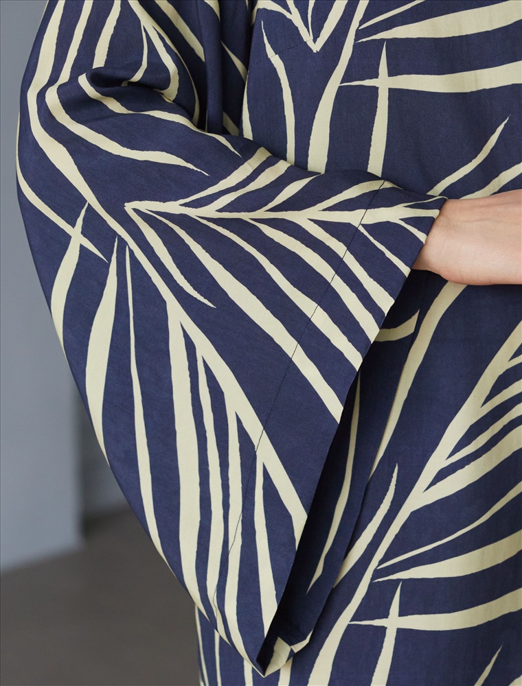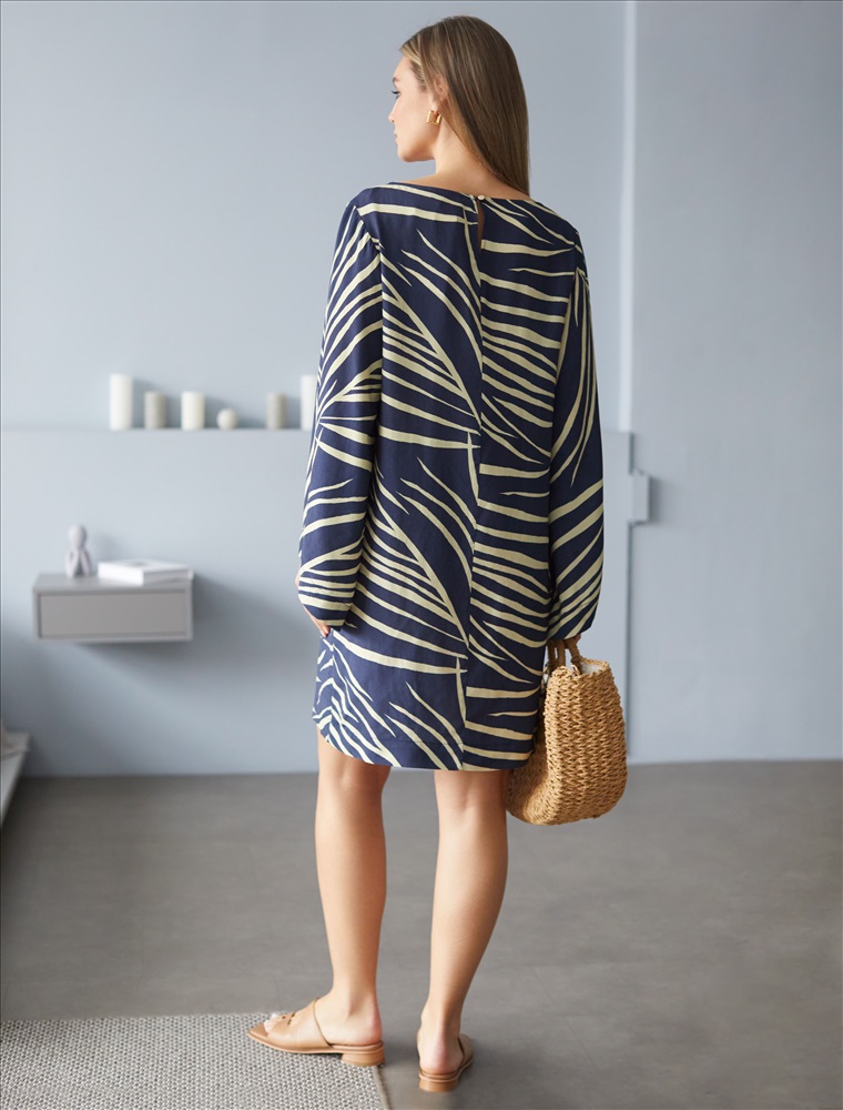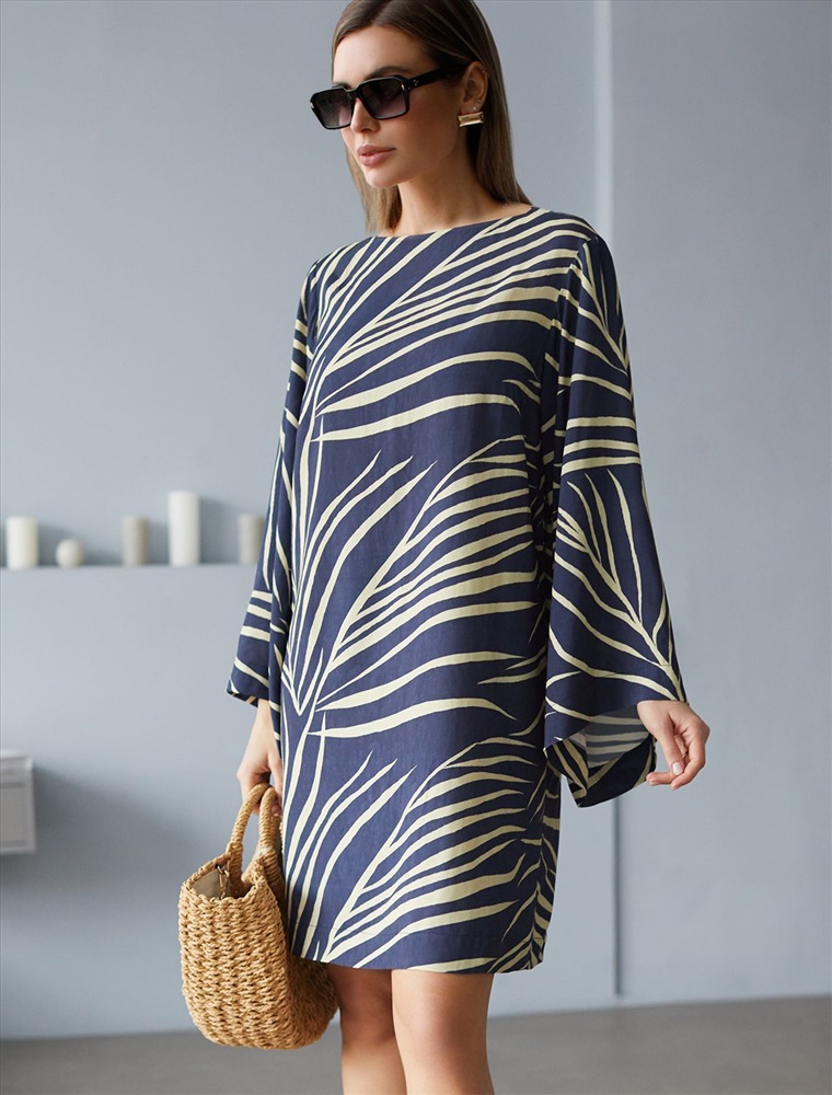 Платье выполнено из вискозы с лиоцеллом. Модель прямого кроя со свободными рукавами. Ткань с характерным мягким блеском хорошо драпируется и струится по телу. В жаркое время года приятно охлаждает кожу.