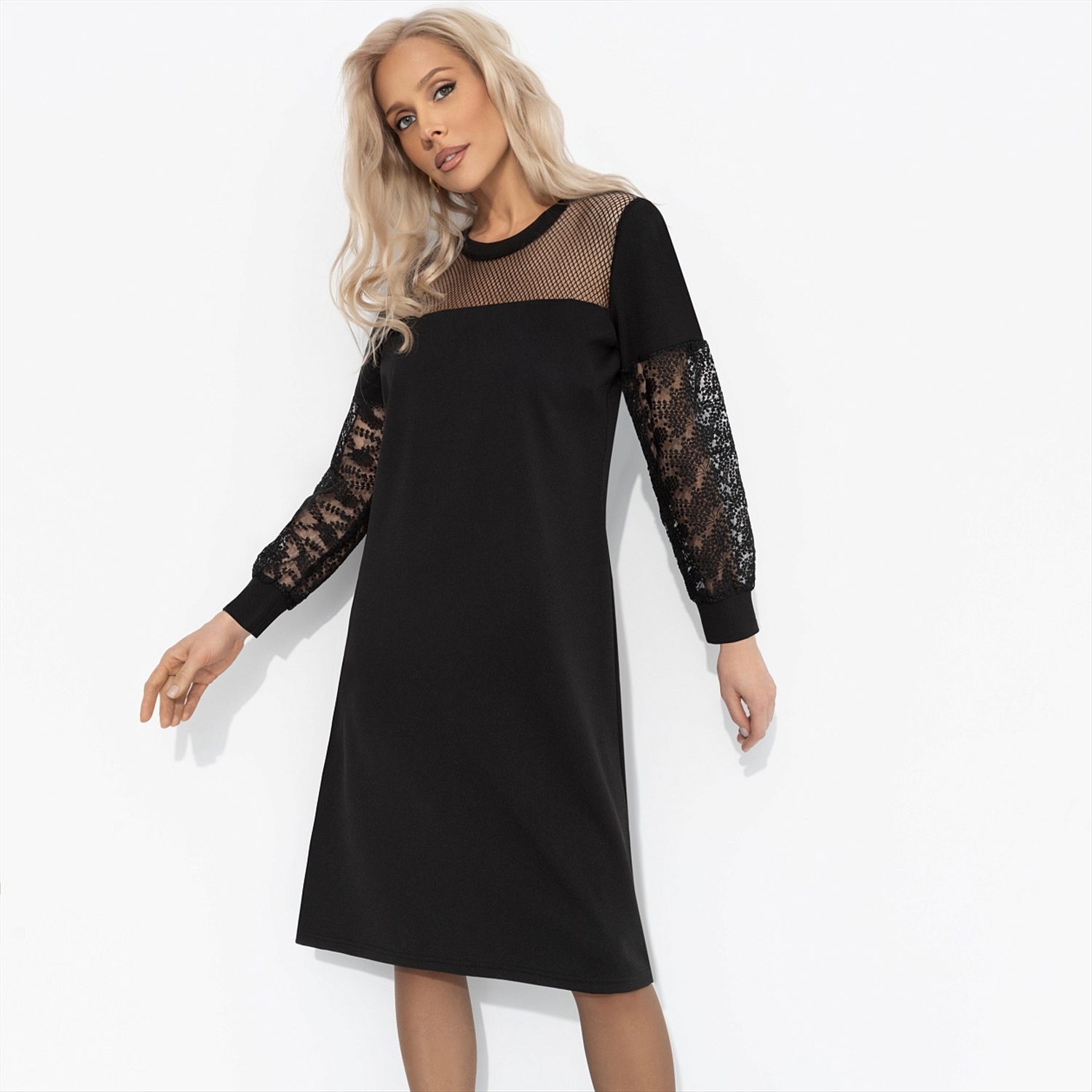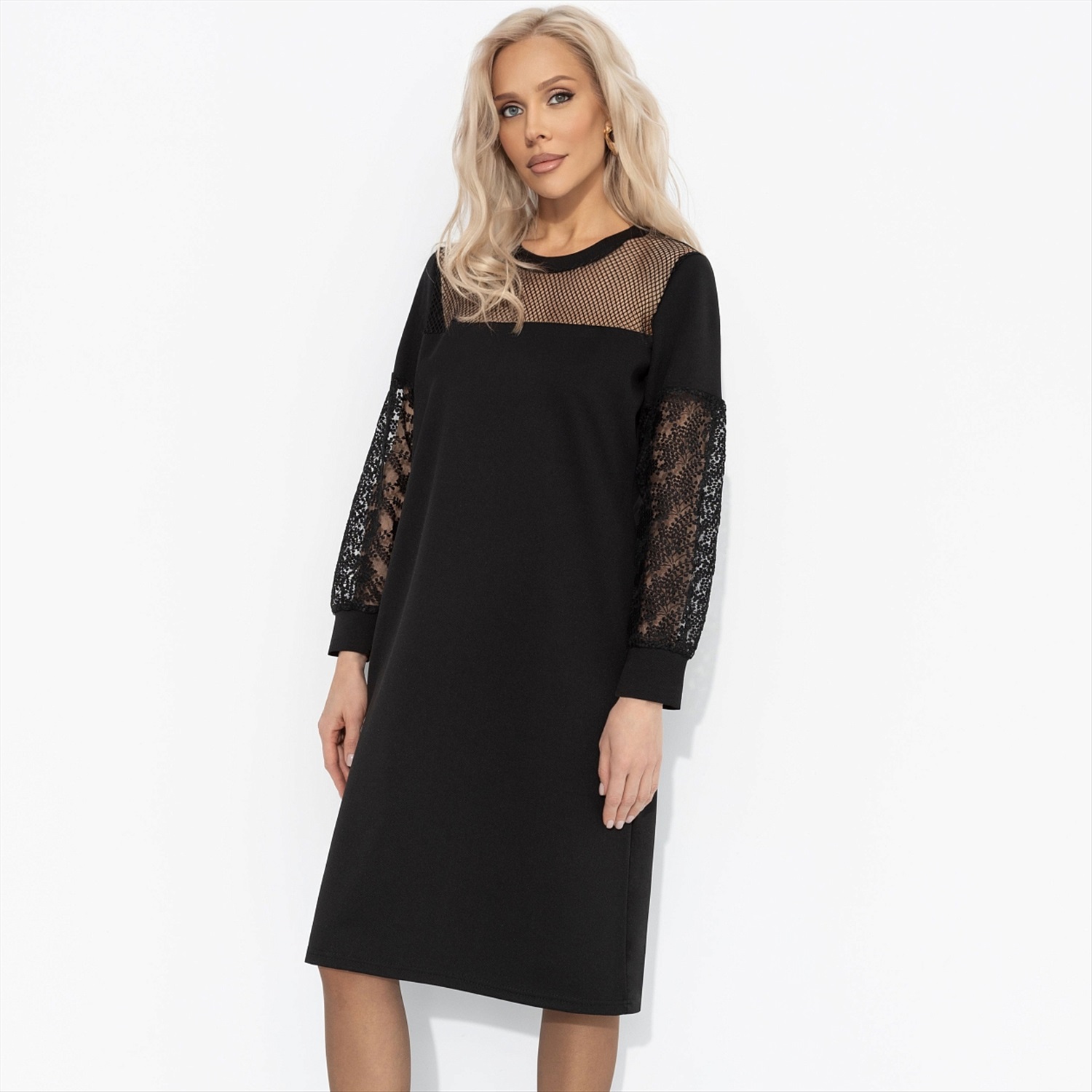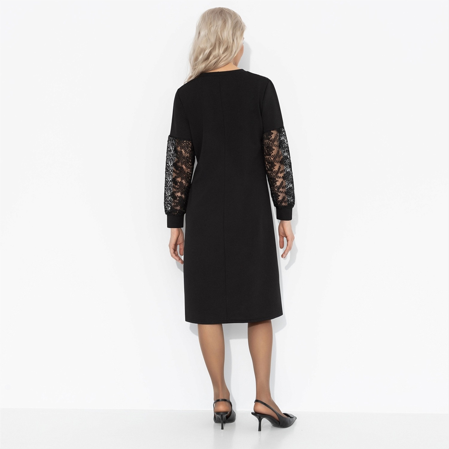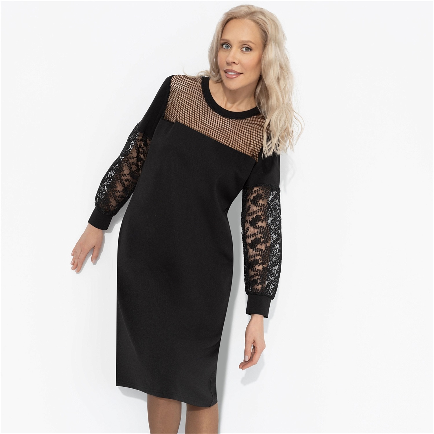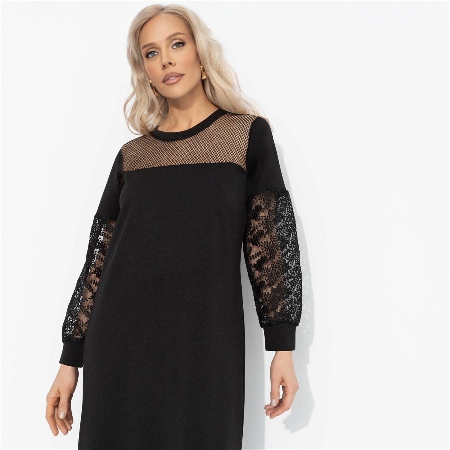Она отключила телефон. Оставила суету за дверью. Платье из ткани «Диор» с кружевными рукавами мягко ложится по силуэту – и кажется, будто делает ее еще красивее. В отражении зеркала – спокойствие, вкус к жизни и лёгкая интрига. Платье прямого силуэта длины миди с мягкой посадкой по фигуре. Полупрозрачная вставка из сетки и рукава из гипюра-стрейч создают изящный контраст фактур. Комментарии к товару