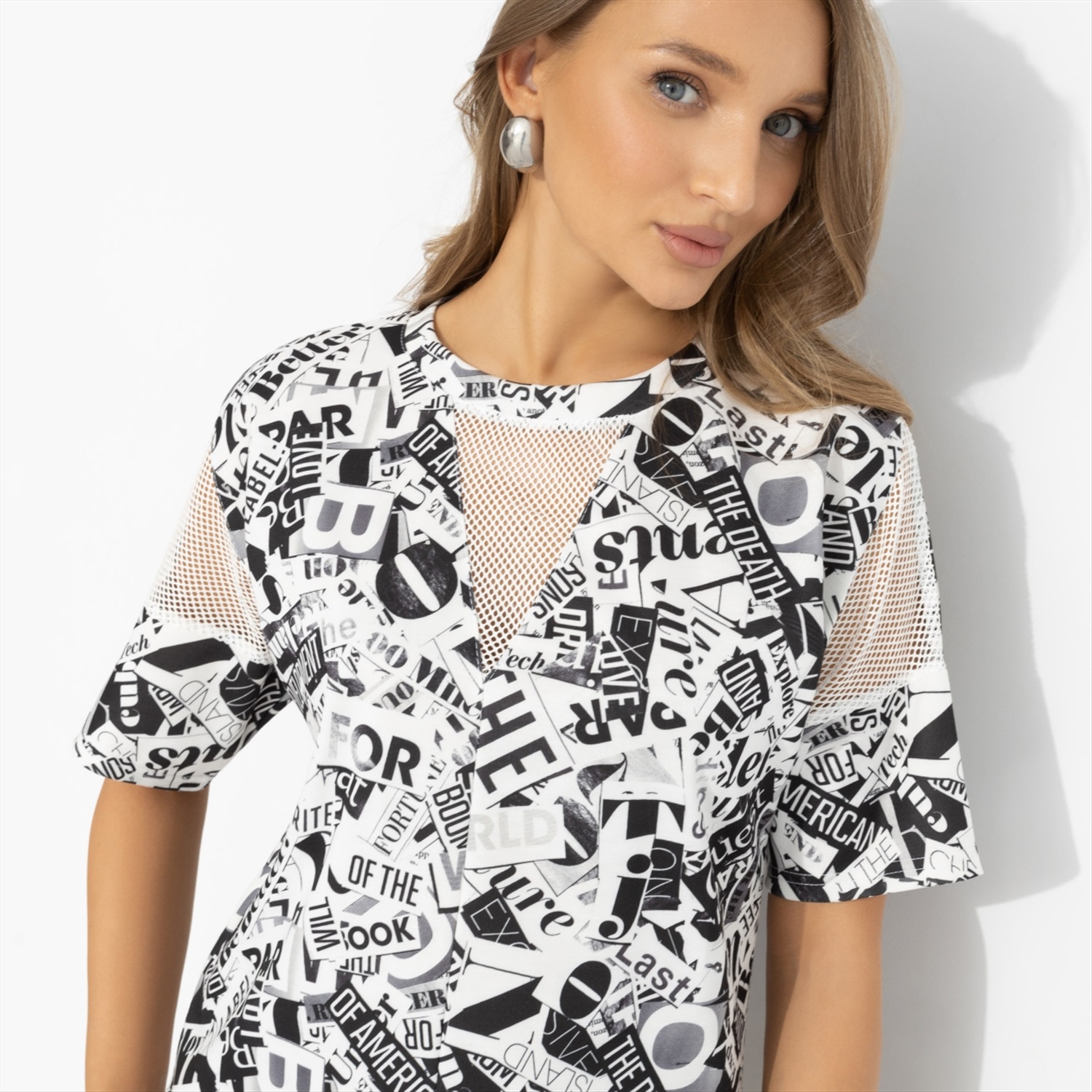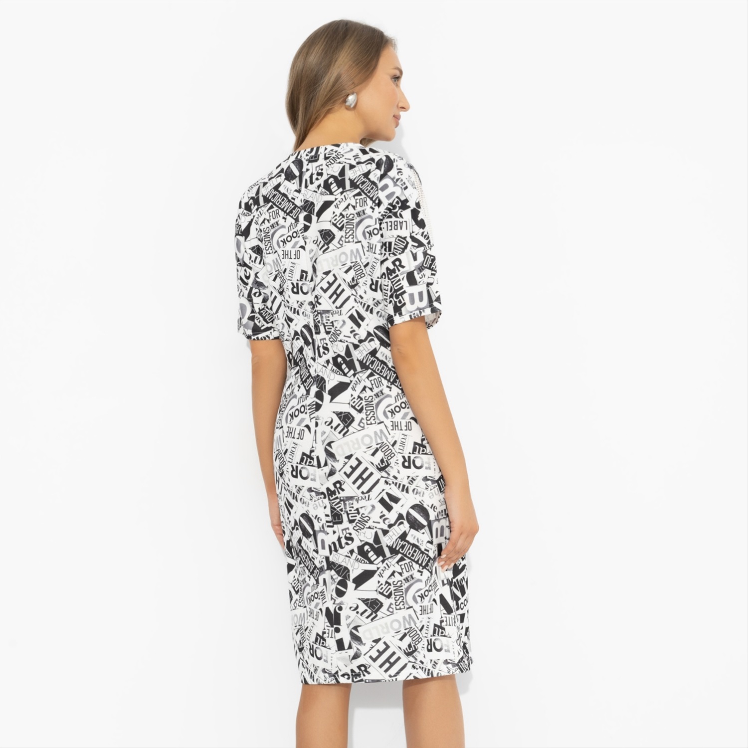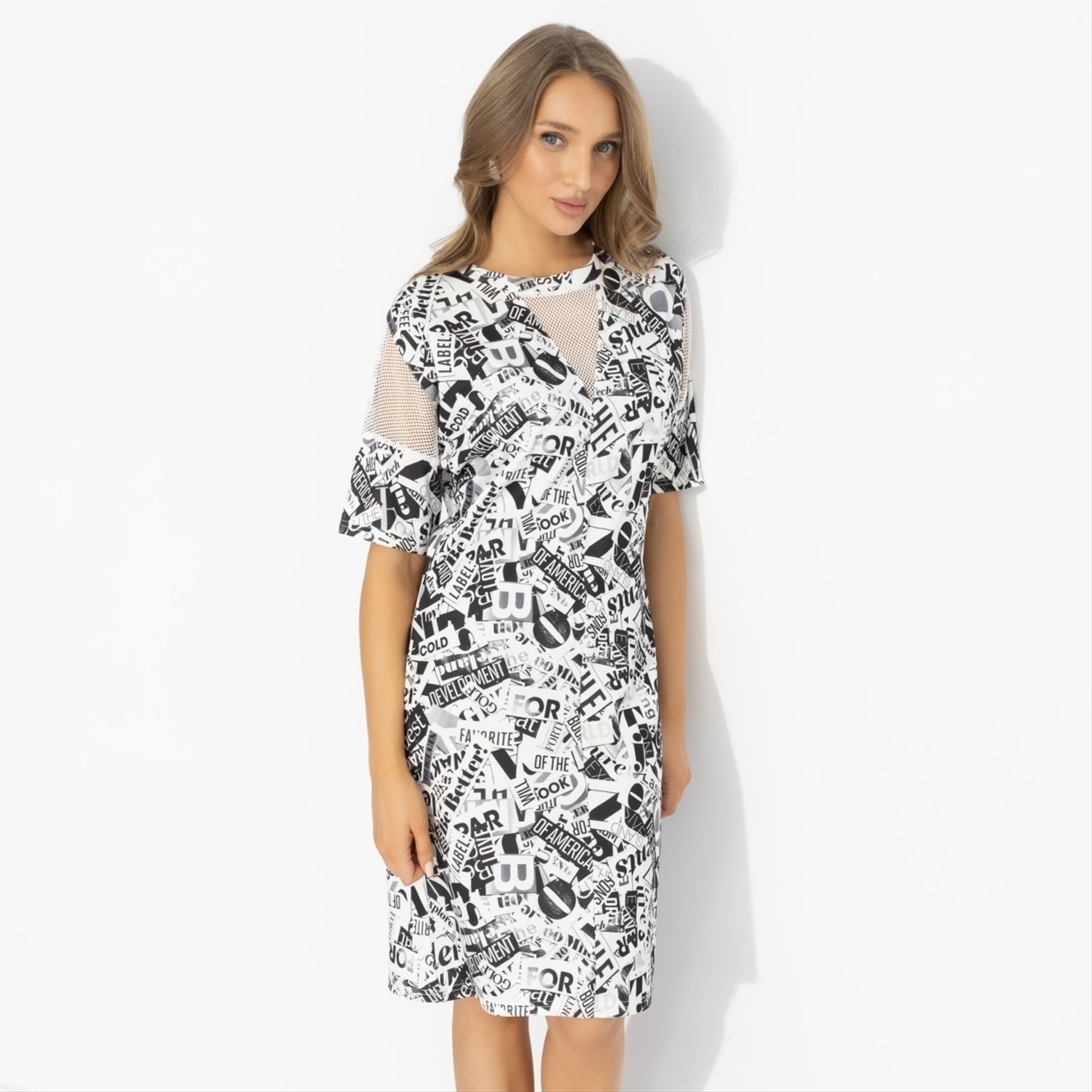7! Да, именно столько часов можно разглядывать принт этого платья и каждый раз находить новые детали. Платье «Не по правилам» создано, чтобы притягивать внимание и становиться тем самым главным инфоповодом дня. Броское, графичное, с настроением расслабленности и игры. Платье прямого силуэта из ткани «Милано». Вставки из гипюра-стрейч добавляют пикантный акцент и говорят о твоей уверенности: ты неотразима.