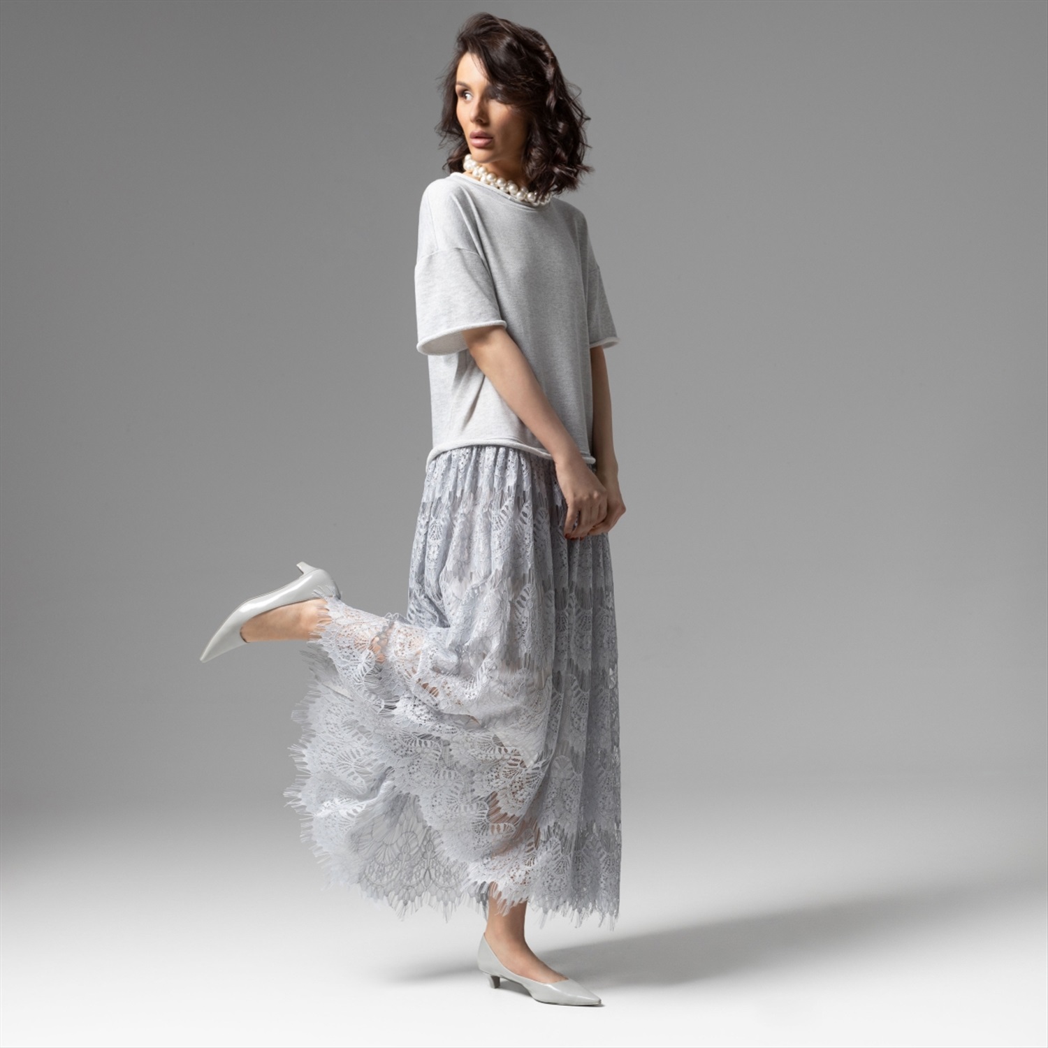 Бунтарский дух был свойственен многим аристократам. Проявляться – роскошь, доступная не каждому. В платье CHARUTTI в комбинации хлопка и тончайшего кружева вы будете на вершине уверенности в себе и станете вдохновением для многих. Платье как комбинация футболки из хлопка с необработанными швами и объемной кружевной юбки. Юбка с подкладом. Кружево премиального качества, вырезается вручную! Комментарии к товару