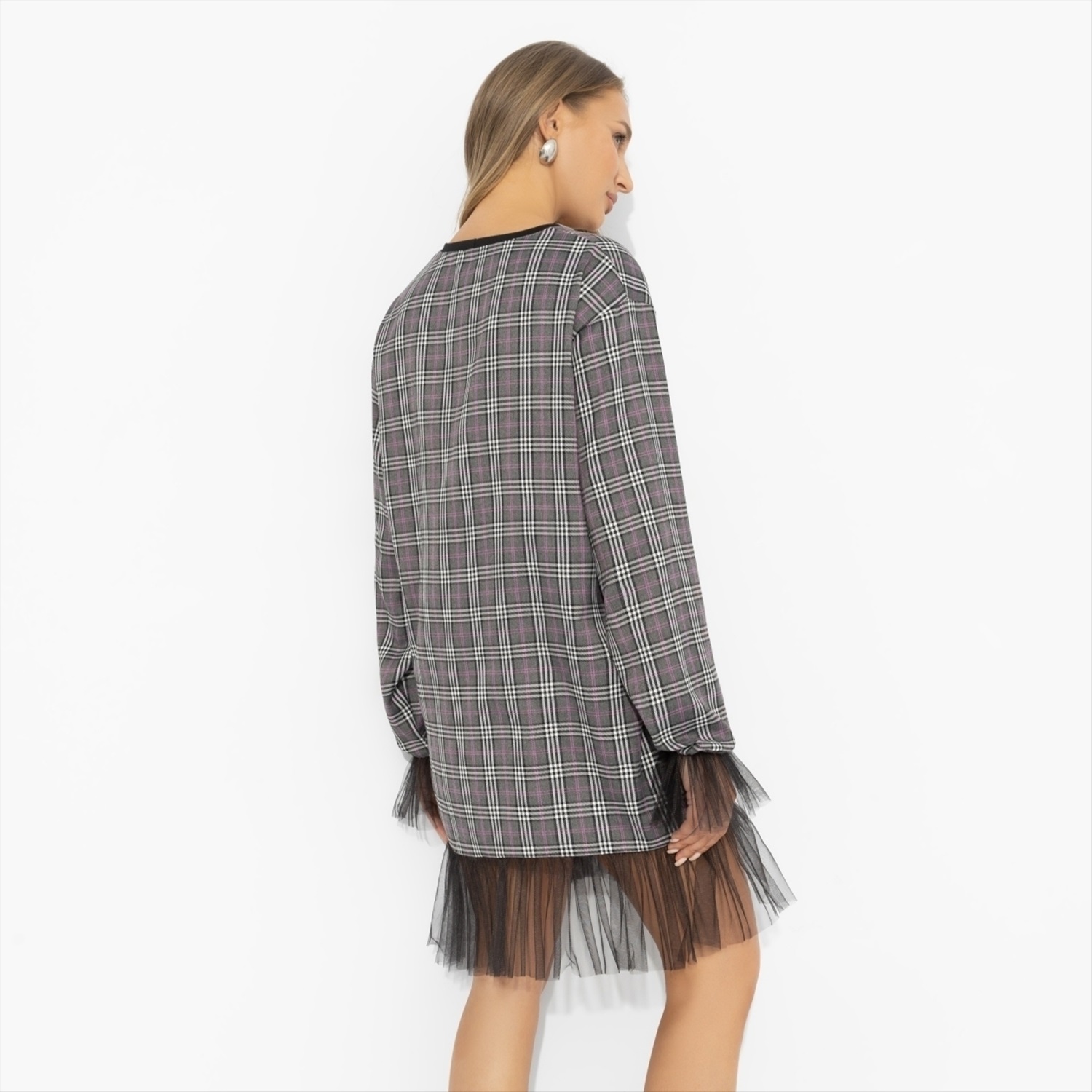 Срочные модные новости: платье «Вне формата» ломает привычные сценарии. Трендовая клетка встречается с игривой сеткой: надела, вышла, собрала восхищенные взгляды – план выполнен. Стиль Вивьен Вествуд. Платье свободного силуэта из костюмной ткани с хлопком. Драматизма добавляют объемные рукава. Длина выше колена, комфортная посадка, платье отлично держит форму и выглядит аккуратно весь день.