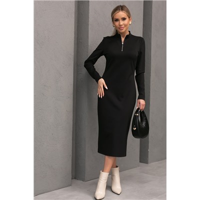 Платье прилегающего силуэта из однотонного трикотажного полотна. Горловина оформлена воротником - стойкой с застежкой на молнию. Длинный втачной рукав. Низ ровный, сзади разрез.