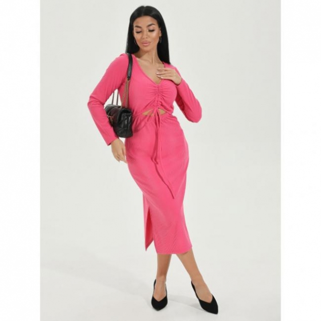 Платье миди, приталенное, отрезное по талии с длинным, втачным рукавом