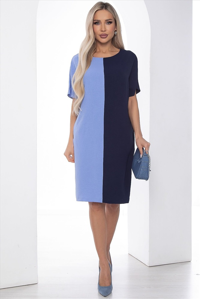 Стильное платье силуэта "бочонок", длиной выше колена, с коротким рукавом. Изюминкой данной модели является оригинальная расцветка. Платья состоит из двух цветов. Прекрасный вариант повседневного платья для тех, кто стремится подчеркнуть свою женственность. Это нарядное вечернее платье больших размеров станет для вас идеальным вариантом красивого стильного платья для любого случая. Оно подчеркивает женственные формы и скрывает то, что должно быть незаметным. Это молодежное платье стройнит любую фигуру на 2 размера! Вы всегда будете в центре внимания, а ваш образ - шикарным и ярким.