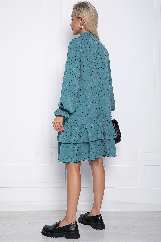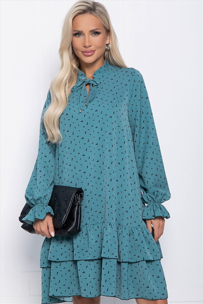 Воздушное и романтичное платье с длинными рукавами обращает на себя внимание своей лёгкостью и воздушностью. Изюминка этого платья — завязки у горловины и ярусный низ.