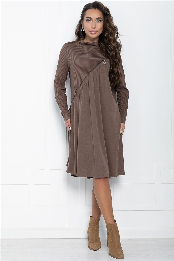 ID товара: 1030481 Состав: 65% Полиэстер, 30% Вискоза, 5% Эластан Сезон: Весна/Лето Длина: До колена Фасон: Свободный Рукав: длинные Вырез горловины: Воротник-стойка Основная ткань: Полиэстер Стиль: повседневный Страна бренда: Россия Страна производства: Россия Артикул: П11022. Тип ткани: смесовая. Состав: 65% полиэстер, 30% вискоза, 5% эластан. Материал: трикотаж. Цвет: коричневый. Принт: отсутствует. Длина: миди. Вид застежки: без застёжки. Силуэт: А-силуэт. Карманы: отсутствуют. Подкладка: отсутствует. Декоративные элементы: отсутствуют. Длина по спинке от верхней точки плеча: 44-46/ 62 см, 48-50/ 63 см, 52-54/ 64 см. Размер изделия на модели: 44. Рост модели: 167 см. Дизайнерское платье из комбинированных тканей для ценителей комфортных и стильных образов. Платье прекрасно подойдёт в качестве повседневного варианта и будет хорошо сочетаться с туфлями, ботильонами или ботинками. Благодаря своему фасону платье прекрасно справляется с задачей скрыть недостатки фигуры и подчеркнуть достоинства. Уход за изделием: ручная стирка до 30 градусов; нельзя отбеливать; отжим запрещён; гладить при t не более 110 С; гладить с изнанки. Внимание! Рекомендуем ориентироваться на размерную сетку и выбирать свой привычный размер, согласно размерной таблице. *Допуск отклонения длины при массовом производстве 1-3 см является нормой. Комментарии к товару