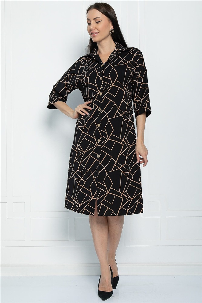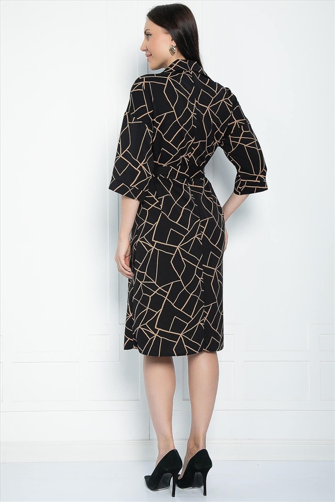 ID товара: 1036669 Состав: 95% Полиэстер, 5% Эластан Сезон: Весна/Лето Длина: Ниже колена Фасон: Полуприлегающий Рукав: 3/4 Вид застежки: Пуговицы Вырез горловины: Отложной воротничок Рисунок: геометрия Тип карманов: Без карманов Декоративные элементы: Пояс Основная ткань: Полиэстер Стиль: повседневный Страна бренда: Россия Страна производства: Россия Артикул: П11216. Тип ткани: синтетическая. Состав: 95% полиэстер, 5% эластан. Материал: плательная. Цвет: черный. Принт: абстракция. Длина: миди. Вид застежки: пуговицы. Силуэт: полуприлегающий. Карманы: отсутствуют. Подкладка: отсутствует. Декоративные элементы: отсутствуют. Длина по спинке от верхней точки плеча: 46-48/ 106 см, 50-52/ 107 см, 54-56/ 108 см. Размер изделия на модели: 44. Рост модели: 168 см. Это комфортное платье - станет вашим верным спутником в любых ситуациях. Воротник рубашечного типа переходящий в застёжку на пуговицах, спущенное плечо и рукав на манжете - все это, настоящая находка для девушек предпочитающих простоту и строгость в одном. Пояс из основной ткани в комплекте. Уход за изделием: ручная стирка до 30 градусов; нельзя отбеливать; отжим запрещён; гладить при t не более 110 С; гладить с изнанки. Внимание! Рекомендуем ориентироваться на размерную сетку и выбирать свой привычный размер, согласно размерной таблице. *Допуск отклонения длины при массовом производстве 1-3 см является нормой. Комментарии к товару
