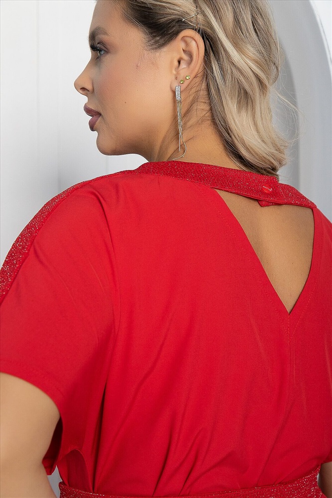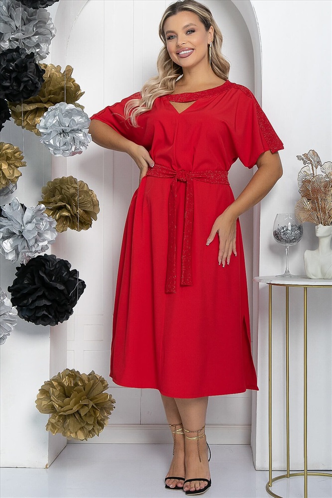Элегантное платье прямого силуэта состоящее из 2-х видов ткани. Потрясающее платье несомненно подчеркнет вашу женственность, а его интересный крой расставит грамотные акценты в вашем образе. Горловина округлая. Деликатный V-образный вырез на груди и спинке. Рукав спущенный. Пояс в комплекте.