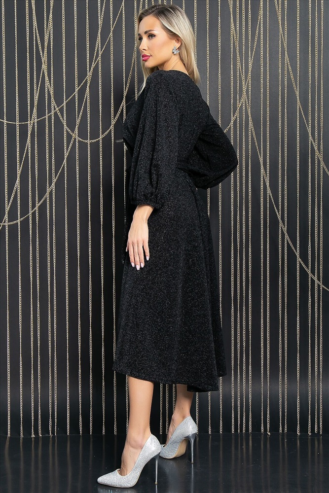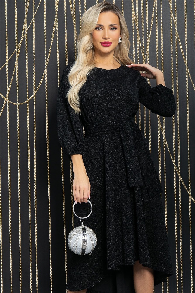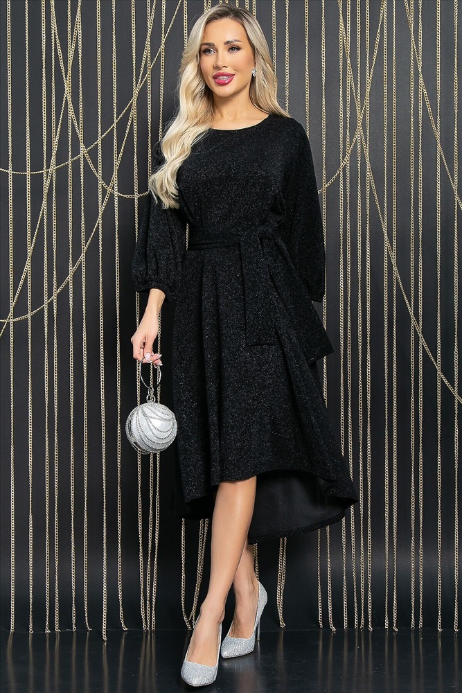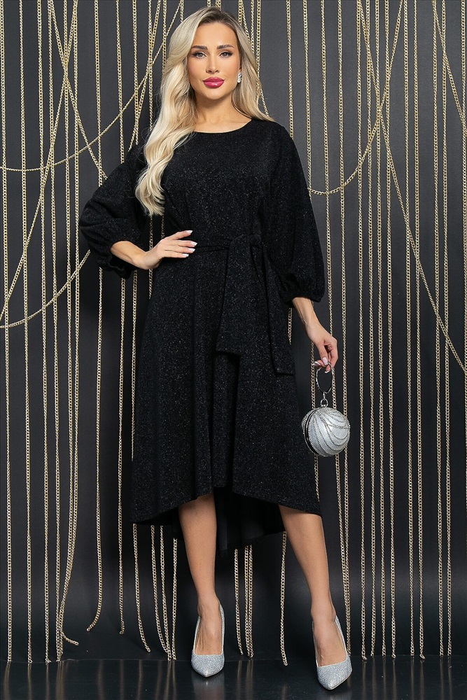 ID товара: 1062721 Состав: 95% Полиэстер, 5% Эластан Сезон: Демисезон Длина: Миди Фасон: Приталенное Рукав: 3/4 Вырез горловины: Округлый Декоративные элементы: Пояс Основная ткань: Полиэстер Стиль: Нарядный Страна бренда: Россия Страна производства: Россия Артикул: П11744. Тип ткани: синтетическая. Состав: 95% полиэстер, 5% эластан. Материал: трикотаж с люрексом. Цвет: чёрный. Принт: отсутствует. Длина: макси. Вид застежки: без застёжки. Силуэт: приталенный. Карманы: отсутствуют. Подкладка: отсутствует. Декоративные элементы: отсутствуют. Длина по спинке от верхней точки плеча: 46/ 123 см, 48-50/ 124 см, 52-54/ 125 см. Размер изделия на модели: 44 Рост модели: 168 см. Вечернее платье из трикотажного полотна с люрексом — эффектная модель, которая окажется в центре внимания на любом праздничном мероприятии. Платье в длине макси, отрезное по талии. Втачной пышный рукав три четверти, собранный по низу на резину, — изюминка платья, выглядит кокетливо и нежно. Округлый вырез горловины делает образ женственным и аккуратным. Ассиметричная расклешённая юбка придаёт платью лёгкую игривость. В комплект входит пояс из основной ткани, который позволяет подчеркнуть талию. Уход за изделием: ручная стирка до 30 градусов; нельзя отбеливать; отжим запрещён; гладить при t не более 110 С; гладить с изнанки. Внимание! Рекомендуем ориентироваться на размерную сетку и выбирать свой привычный размер, согласно размерной таблице. *Допуск отклонения длины при массовом производстве 1-3 см является нормой. Комментарии к товару