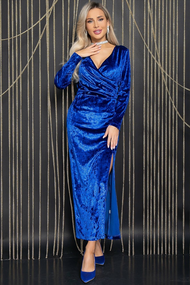 ID товара: 1063145 Состав: 98% Полиэстер, 2% Эластан Сезон: Демисезон Длина: Макси Фасон: Полуприлегающий Рукав: длинные Вид застежки: Без застежки Вырез горловины: V-образный Декоративные элементы: Разрез Основная ткань: Полиэстер Стиль: Нарядный Страна бренда: Россия Страна производства: Россия Артикул: П11901. Тип ткани: синтетическая. Состав: 98% полиэстер, 2% эластан. Материал: бархат. Цвет: синий. Принт: отсутствует. Длина: макси. Вид застежки: без застёжки. Силуэт: облегающий. Карманы: отсутствуют. Подкладка: отсутствует. Декоративные элементы: сборка на груди, разрез на ноге спереди. Длина по спинке от верхней точки плеча: 44/ 134 см, 46/ 135 см, 48/ 136 см, 50/ 137 см, 52/ 138 см. Размер изделия на модели: 44 Рост модели: 168 см. Изящное и обтягивающее платье — идеальный выбор для особых моментов и незабываемых событий в вашей жизни. Его великолепный разрез и сборка у груди делают образ поистине уникальным и притягательным. Платье выполнено из мягкой и приятной на ощупь бархатной ткани, которая подарит вам ощущение комфорта и уюта. Уход за изделием: ручная стирка до 30 градусов; нельзя отбеливать; отжим запрещён; гладить при t не более 110 С; гладить с изнанки. Внимание! Рекомендуем ориентироваться на размерную сетку и выбирать свой привычный размер, согласно размерной таблице. *Допуск отклонения длины при массовом производстве 1-3 см является нормой. Комментарии к товару