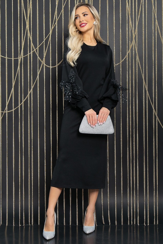 ID товара: 1063203 Состав: 65% Полиэстер, 30% Вискоза, 5% Эластан Сезон: Демисезон Длина: Миди Фасон: Полуприлегающий Рукав: длинные Вырез горловины: Округлый Декоративные элементы: Разрезы Основная ткань: Полиэстер Стиль: Нарядный Страна бренда: Россия Страна производства: Россия Артикул: П11194. Тип ткани: смесовая. Состав: 65% полиэстер, 30% вискоза, 5% эластан. Материал: трикотаж. Цвет: чёрный. Принт: отсутствует. Длина: миди. Вид застежки: без застёжки. Силуэт: полуприлегающий. Карманы: отсутствуют. Подкладка: отсутствует. Декоративные элементы: банты на рукавах. Длина по спинке от верхней точки плеча: 44/ 120 см, 46-48/ 123 см, 50/ 126 см, 52-54/ 128 см. Размер изделия на модели: 44 Рост модели: 168 см. Облегающий и изысканный фасон этого платья подчеркнёт все достоинства вашей фигуры. Выполненное из трикотажного полотна, оно прекрасно подходит для офиса. Лаконичный крой позволяет сочетать его с различными элементами гардероба. Создавайте новые модные образы, комбинируя это осеннее платье с разнообразными вещами из своего гардероба и дополняя его стильными дизайнерскими аксессуарами. Вместо бантов вы можете использовать любые ленты или цепочки, чтобы создать уникальный образ, который будет соответствовать вашему настроению. Уход за изделием: ручная стирка до 30 градусов; нельзя отбеливать; отжим запрещён; гладить при t не более 110 С; гладить с изнанки. Внимание! Рекомендуем ориентироваться на размерную сетку и выбирать свой привычный размер, согласно размерной таблице. *Допуск отклонения длины при массовом производстве 1-3 см является нормой. Комментарии к товару