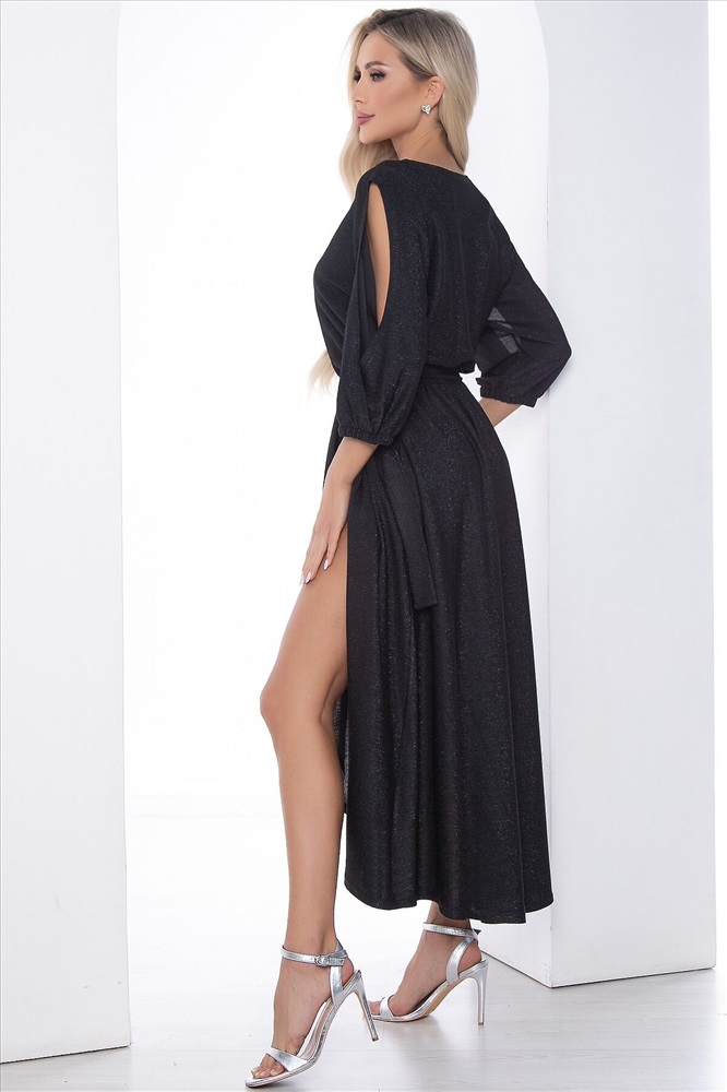 Артикул: П12140. Тип ткани: синтетическая. Состав: 97% полиэстер, 3% эластан. Материал: трикотаж с люрексом. Цвет: чёрный. Принт: отсутствует. Длина: макси. Вид застежки: без застёжки. Силуэт: приталенный. Карманы: отсутствуют. Подкладка: отсутствует. Декоративные элементы: отсутствуют. Длина по спинке от верхней точки плеча: 42-54/ 133 см. Размер изделия на модели: 44. Рост модели: 170 см.