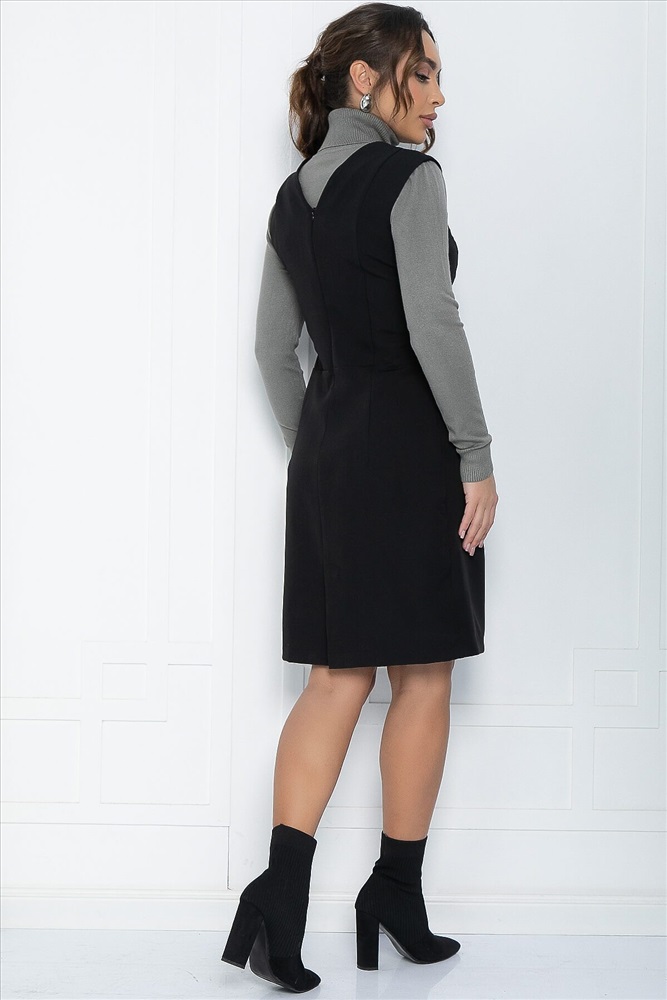 ID товара: 1071015 Состав: 100% Полиэстер Сезон: Демисезон Длина: До колена Фасон: Полуприлегающий Рукав: без рукавов Вид застежки: Молния Тип карманов: В шве Основная ткань: Полиэстер Стиль: классический Страна бренда: Россия Страна производства: Россия Артикул: П12078. Тип ткани: синтетическая. Состав: 100% полиэстер. Материал: костюмная. Цвет: чёрный. Принт: отсутствует. Длина: миди. Вид застежки: потайная молния. Силуэт: полуприлегающий. Карманы: есть. Подкладка: отсутствует. Декоративные элементы: карманы, складки, шлица. Длина по спинке от верхней точки плеча: 44-54/ 100 см. Размер изделия на модели: 44 Рост модели: 167 см. Сарафан сочетает в себе стиль и удобство, что делает его идеальным вариантом как для офиса, так и для повседневной носки. Он выполнен из плотной, практичной костюмной ткани. Прекрасно комбинируется с блузками, водолазками, рубашками и пиджаками, позволяя создавать разнообразные и стильные образы. Отсутствие рукавов делает его идеальным выбором для тех, кто не любит одежду с длинным рукавом. Водолазка на фото арт. Б12086 Уход за изделием: ручная стирка до 30 градусов; нельзя отбеливать; отжим запрещён; гладить при t не более 110 С; гладить с изнанки. Внимание! Рекомендуем ориентироваться на размерную сетку и выбирать свой привычный размер, согласно размерной таблице. *Допуск отклонения длины при массовом производстве 1-3 см является нормой. Комментарии к товару