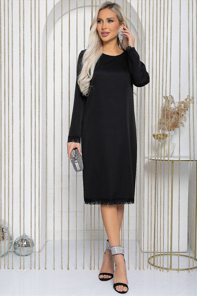 ID товара: 1071017 Состав: 95% Полиэстер, 5% Эластан Сезон: Демисезон Длина: прикрывает колено Фасон: Полуприлегающий Рукав: длинные Вид застежки: Пуговица Основная ткань: Полиэстер Стиль: классический Страна бренда: Россия Страна производства: Россия Артикул: П12216-25. Тип ткани: синтетическая. Состав: 95% полиэстер, 5% эластан. Материал: плательная "Лайт". Цвет: чёрный. Принт: отсутствует. Длина: миди. Вид застежки: пуговица. Силуэт: полуприлегающий. Карманы: отсутствуют. Подкладка: отсутствует. Декоративные элементы: кружево по низу платья и рукава. Длина по спинке от верхней точки плеча: 44/ 100 см, 46/ 102 см, 48/ 103 см, 50/ 105 см. Размер изделия на модели: 44 Рост модели: 168 см. Изящное платье, украшенное кружевом по низу и рукавам, создаст образ настоящей леди! Оно идеально подходит как для строгих деловых, так и для нежных женственных образов. Вы можете носить его как в повседневной жизни, так и на праздничные мероприятия — оно будет уместно в любой ситуации. В комплект входит тканевый пояс, который подчеркнёт вашу красоту. Уход за изделием: ручная стирка до 30 градусов; нельзя отбеливать; отжим запрещён; гладить при t не более 110 С; гладить с изнанки. Внимание! Рекомендуем ориентироваться на размерную сетку и выбирать свой привычный размер, согласно размерной таблице. *Допуск отклонения длины при массовом производстве 1-3 см является нормой. Комментарии к товару