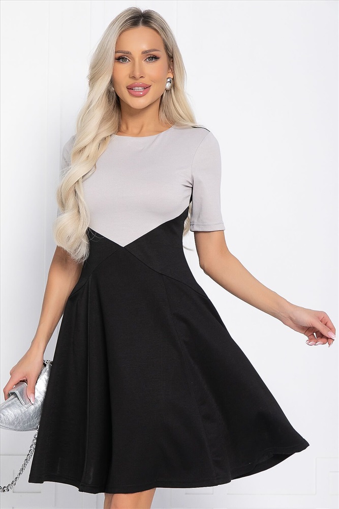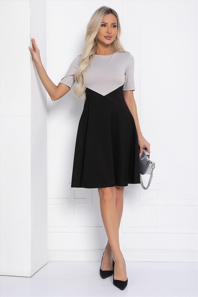 ID товара: 1072230 Состав: 65% Полиэстер, 30% Вискоза, 5% Эластан Сезон: Демисезон Длина: До колена Фасон: Расклешенное Рукав: короткие Вид застежки: Без застежки Вырез горловины: Округлый Основная ткань: Полиэстер Стиль: повседневный Страна бренда: Россия Страна производства: Россия Артикул: П12296-10. Тип ткани: смесовая. Состав: 65% полиэстер, 30% вискоза, 5% эластан. Материал: трикотаж. Цвет: чёрно-серый. Принт: отсутствует. Длина: миди. Вид застежки: без застёжки. Силуэт: полуприлегающий. Карманы: отсутствуют. Подкладка: отсутствует. Декоративные элементы: отсутствуют. Длина по спинке от верхней точки плеча: 44/ 91 см, 46/ 92 см, 48/ 93 см, 50/ 94 см, 52/ 95 см. Размер изделия на модели: 44 Рост модели: 168 см. Стильный дизайн и приталенный силуэт подчеркнут женственность и красоту каждой девушки, от миниатюрных до больших размеров. Длина миди подходит для любых времен года и событий, будь это летний праздник, осенний вечер или зимняя вечеринка. Короткие рукава придают особый шарм, а правильная юбка ниже колен не режет ноги и выглядит шикарно. Праздничное однотонное платье скрывает некоторые недостатки фигуры, включая живот, и придает образу изящность и изысканность. Оно является классическим вариантом, подходящим для любой ситуации, в том числе на Новый год и на День рождения. Вы будете выглядеть прекрасно и утонченно, будь то повседневная прогулка, школьное или строгое деловое офисное мероприятие. Уход за изделием: ручная стирка до 30 градусов; нельзя отбеливать; отжим запрещён; гладить при t не более 110 С; гладить с изнанки. Внимание! Рекомендуем ориентироваться на размерную сетку и выбирать свой привычный размер, согласно размерной таблице. *Допуск отклонения длины при массовом производстве 1-3 см является нормой. Комментарии к товару
