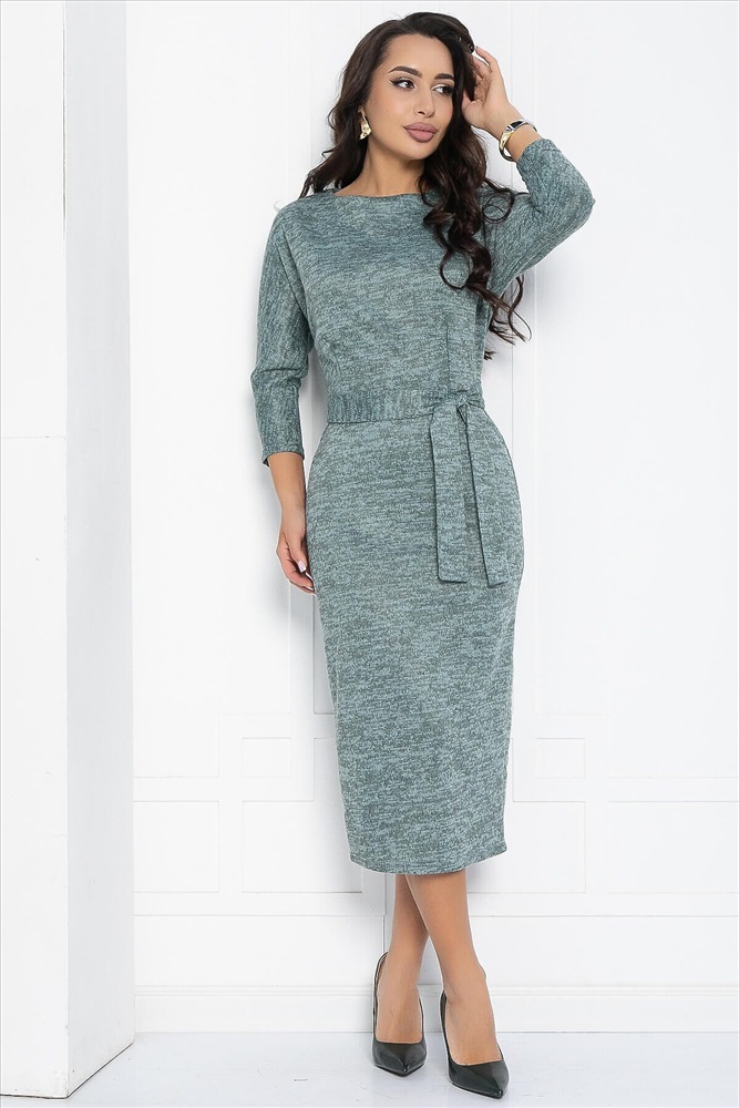 Артикул: П12345-10. Тип ткани: смесовая. Состав: 65% полиэстер, 30% вискоза, 5% эластан. Материал: трикотаж. Цвет: зелёный. Принт: отсутствует. Длина: миди. Вид застежки: без застёжки. Силуэт: полуприлегающий. Карманы: отсутствуют. Подкладка: отсутствует. Декоративные элементы: отсутствуют. Длина по спинке от верхней точки плеча: 44-46/ 120 см, 48/ 122 см, 50/ 124 см, 52/ 127 см, 54/ 128 см. Размер изделия на модели: 44 Рост модели: 167 см.