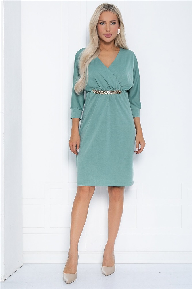 ID товара: 1078285 Состав: 95% Полиэстер, 5% Эластан Сезон: Демисезон Длина: Средняя Фасон: Полуприлегающий Рукав: 3/4 Вырез горловины: V-образный Декоративные элементы: Цепочка Основная ткань: Полиэстер Стиль: классический Страна бренда: Россия Страна производства: Россия Артикул: П12503-5. Тип ткани: синтетическая. Состав: 95% полиэстер, 5% эластан. Материал: трикотаж. Цвет: оливковый. Принт: отсутствует. Длина: миди. Вид застежки: без застёжки. Силуэт: полуприлегающий. Карманы: отсутствуют. Подкладка: отсутствует. Декоративные элементы: цепочка под грудью (не съёмная). Длина по спинке от верхней точки плеча: 44-48/ 96 см, 50-54/ 99 см. Размер изделия на модели: 44 Рост модели: 168 см. Изящное платье с V-образным вырезом, которое идеально садится по фигуре. Оно имеет отрезную линию под грудью, что создаёт элегантный силуэт и обеспечивает удобство в носке. Спущенная линия плеча придаёт образу особый шарм, а изящная цепочка служит эффектным дополнением, добавляя образу нотку изысканности. Это платье станет прекрасным выбором для особых мероприятий и вечерних выходов. Уход за изделием: ручная стирка до 30 градусов; нельзя отбеливать; отжим запрещён; гладить при t не более 110 С; гладить с изнанки. Внимание! Рекомендуем ориентироваться на размерную сетку и выбирать свой привычный размер, согласно размерной таблице. *Допуск отклонения длины при массовом производстве 1-3 см является нормой. Комментарии к товару