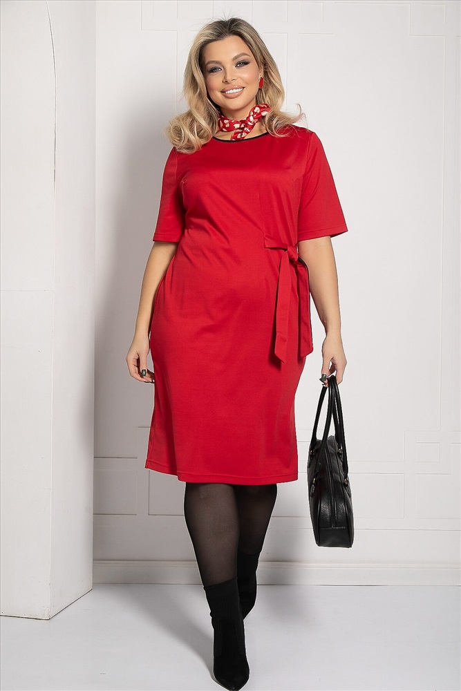ID товара: 1084950 Состав: 95% Полиэстер, 5% Эластан Сезон: Демисезон Длина: прикрывает колено Фасон: Полуприлегающий Рукав: короткие Вид застежки: Без застежки Вырез горловины: Округлый Декоративные элементы: Завязки Основная ткань: Полиэстер Стиль: классический Страна бренда: Россия Страна производства: Россия Артикул: П12623-25. Тип ткани: синтетическая. Состав: 95% полиэстер, 5% эластан. Материал: трикотаж. Цвет: красный. Принт: отсутствует. Длина: миди. Вид застежки: без застёжки. Силуэт: полуприлегающий. Карманы: отсутствуют. Подкладка: отсутствует. Декоративные элементы: отсутствуют. Длина по спинке от верхней точки плеча: 46/ 96 см, 48-52/ 101 см, 54/ 102 см. Размер изделия на модели: 52 Рост модели: 170 см. Изящное платье в оттенках красного и чёрного — это воплощение элегантности и стиля. Оно станет идеальным выбором для любого случая. Благодаря вшитому поясу, который можно регулировать, платье идеально садится по фигуре, подчёркивая её достоинства и создавая утончённый силуэт. Уход за изделием: ручная стирка до 30 градусов; нельзя отбеливать; отжим запрещён; гладить при t не более 110 С; гладить с изнанки. Внимание! Рекомендуем ориентироваться на размерную сетку и выбирать свой привычный размер, согласно размерной таблице. *Допуск отклонения длины при массовом производстве 1-3 см является нормой. Комментарии к товару