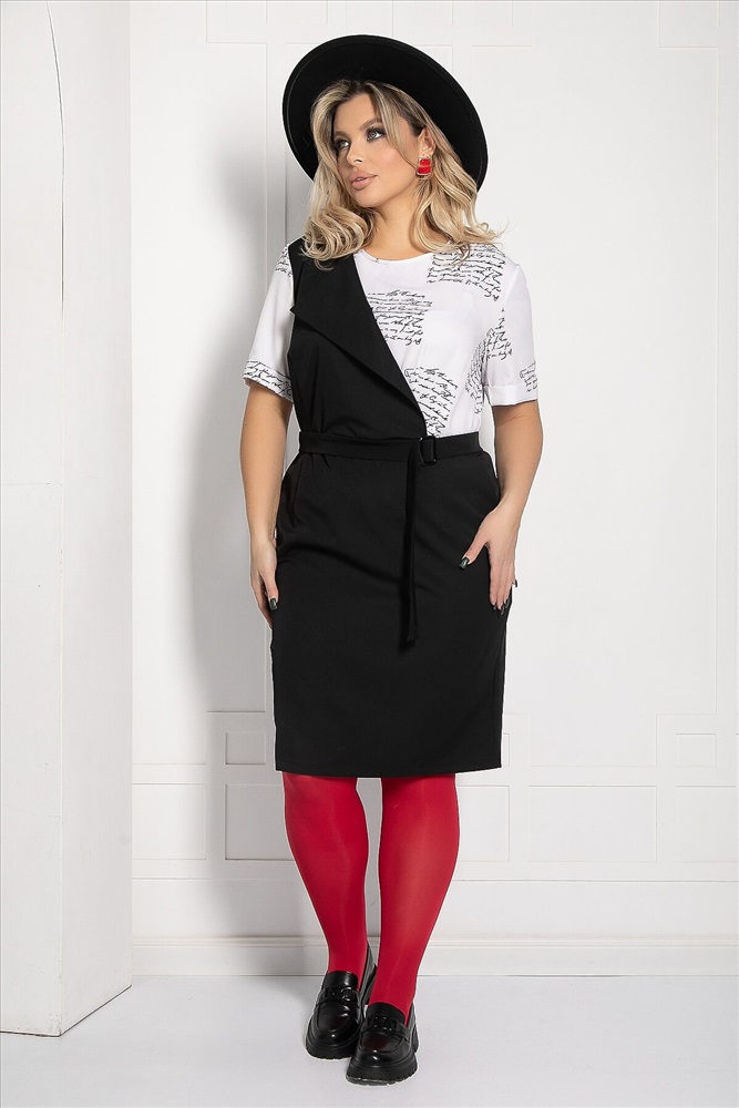 ID товара: 1085216 Состав: 60% Полиэстер, 35% Вискоза, 5% Эластан Сезон: Демисезон Длина: До колена Фасон: Приталенное Рукав: короткие Вид застежки: Молния Вырез горловины: Округлый Рисунок: Надпись Тип карманов: В шве Декоративные элементы: Принт Основная ткань: Полиэстер Стиль: классический Страна бренда: Россия Страна производства: Россия Артикул: П12689-13. Тип ткани: смесовая. Состав: 60% полиэстер, 35% вискоза, 5% эластан. Материал: костюмно-блузочный. Цвет: чёрно-белый. Принт: надпись. Длина: миди. Вид застежки: потайная молния. Силуэт: приталенный. Карманы: есть. Подкладка: отсутствует. Декоративные элементы: пояс. Длина по спинке от верхней точки плеча: 46-48/ 96 см, 50-52/ 97 см, 54-56/ 98 см. Размер изделия на модели: 52 Рост модели: 170 см. Оригинальное платье выполнено из комбинированных материалов, приятных к телу. Верхняя часть выполнена с имитацией блузы с коротким втачным рукавом. Округлый вырез горловины, по спинке застегивается на застёжку «петля-пуговица». В боковом шве есть потайная молния. Платье приталенного силуэта, в боковых швах расположены карманы, сзади на юбке шлица. Повседневное, базовое платье добавит изысканности вашему образу и подчеркнет вашу женственность, можете надеть на любой праздник или на вечеринку. В комплекте пояс с пластиковой пряжкой. Уход за изделием: ручная стирка до 30 градусов; нельзя отбеливать; отжим запрещён; гладить при t не более 110 С; гладить с изнанки. Внимание! Рекомендуем ориентироваться на размерную сетку и выбирать свой привычный размер, согласно размерной таблице. *Допуск отклонения длины при массовом производстве 1-3 см является нормой. Комментарии к товару