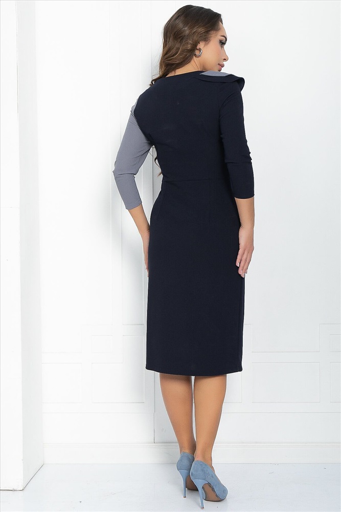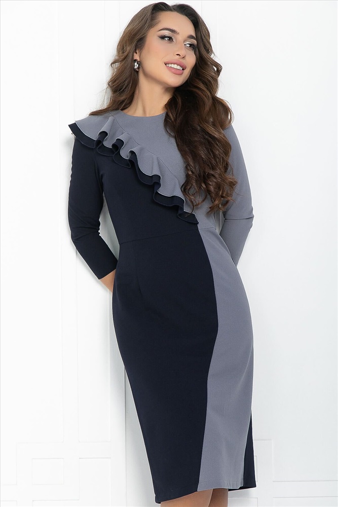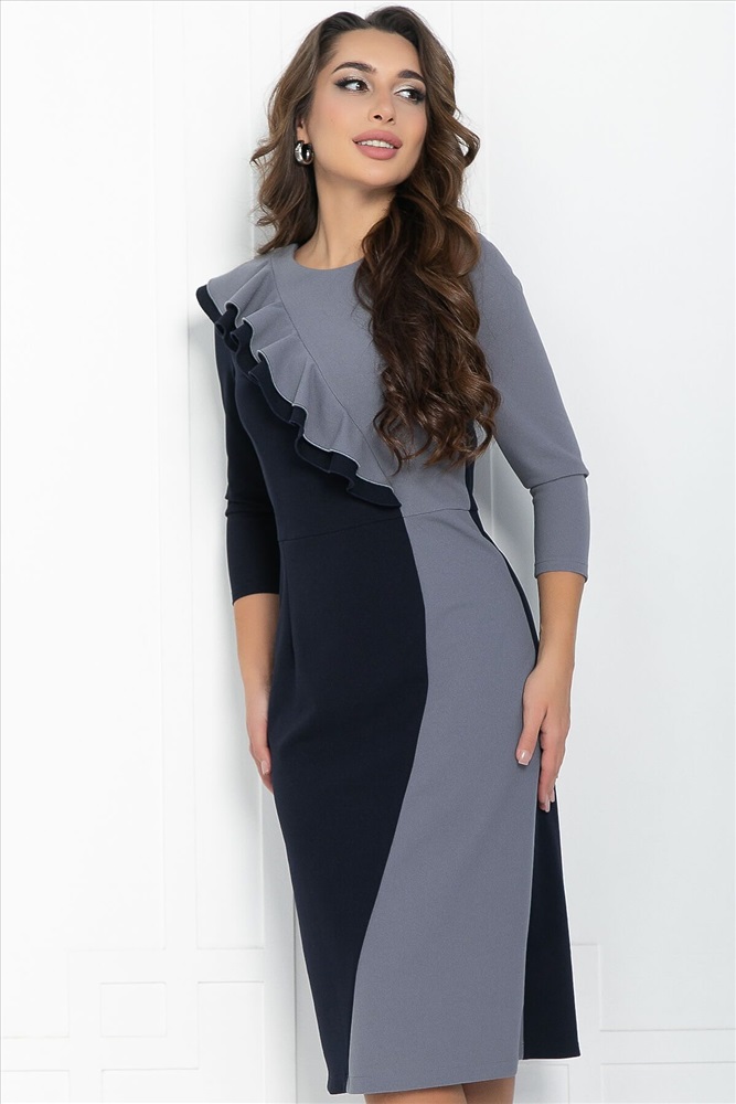 ID товара: 1103545 Состав: 65% Полиэстер, 30% Вискоза, 5% Эластан Сезон: Весна/Лето Длина: Миди Фасон: Приталенное Рукав: 3/4 Вырез горловины: Округлый Декоративные элементы: Волан Основная ткань: Полиэстер Стиль: классический Страна бренда: Россия Страна производства: Россия Артикул: П12745-35М. Тип ткани: смесовый. Состав: 65% полиэстер, 30% вискоза, 5% эластан. Материал: трикотаж. Цвет: серо-синий. Принт: отсутствует. Длина: миди. Вид застежки: без застёжки. Силуэт: приталенный. Карманы: отсутствуют. Подкладка: отсутствует. Декоративные элементы: на лифе платья двойной волан, серая вставка. Длина по спинке от верхней точки плеча: 42/ 106 см, 44/ 107 см, 46-48/ 108 см, 50-52/ 110 см. Размер изделия на модели: 44. Рост модели: 167 см. Роскошное платье, спереди комбинированное из двух цветов создающая свою уникальность, за счет двойного волана на лифе. Модель имеет рукава 3/4 и может стать достойным повседневным нарядом на осень и зиму для девушек, любящих выглядеть элегантно в любой ситуации – на вечеринке и на работе. Уход за изделием: ручная стирка до 30 градусов; нельзя отбеливать; отжим запрещён; гладить при t не более 110 С; гладить с изнанки. Внимание! Рекомендуем ориентироваться на размерную сетку и выбирать свой привычный размер, согласно размерной таблице. *Допуск отклонения длины при массовом производстве 1-3 см является нормой. Комментарии к товару