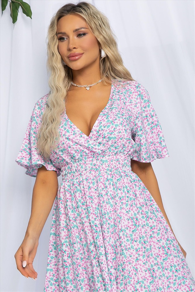 Артикул: П13101-8М. Тип ткани: натуральный. Состав: 100% хлопок. Материал: штапель. Цвет: розовый. Принт: цветочный. Длина: миди. Вид застежки: без застёжки. Силуэт: приталенный. Карманы: отсутствуют. Подкладка: отсутствует. Декоративные элементы: отсутствуют. Длина по спинке от верхней точки плеча: 44-54/ 106 см. Размер изделия на модели: 44