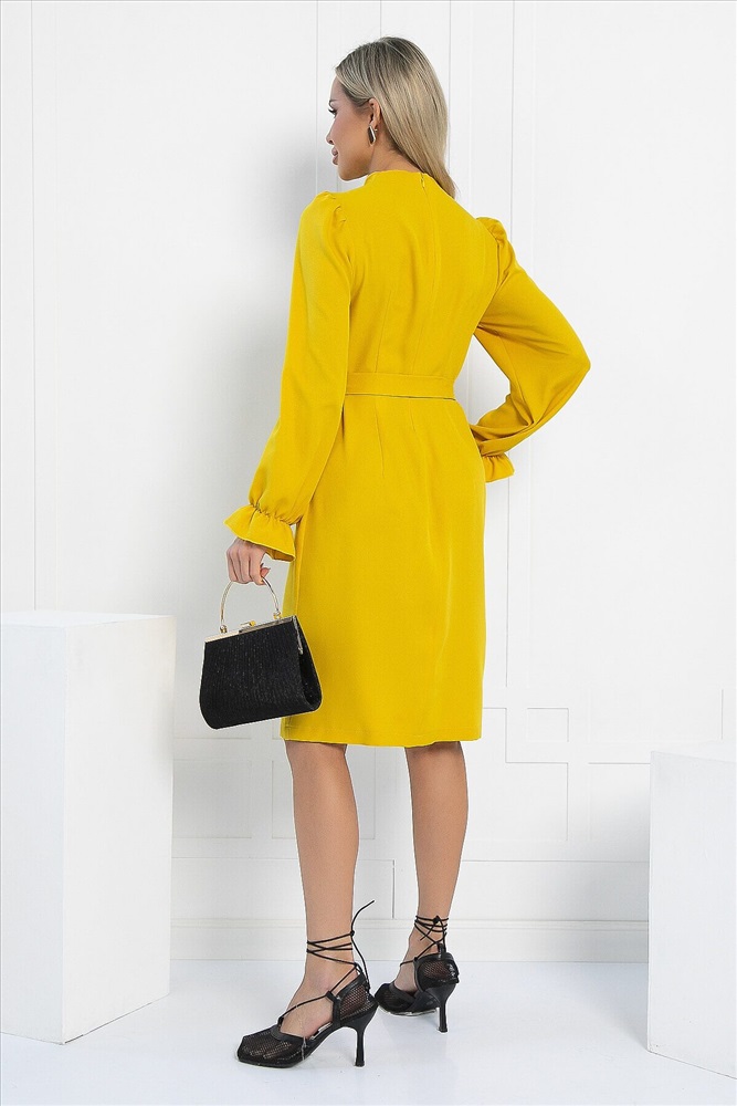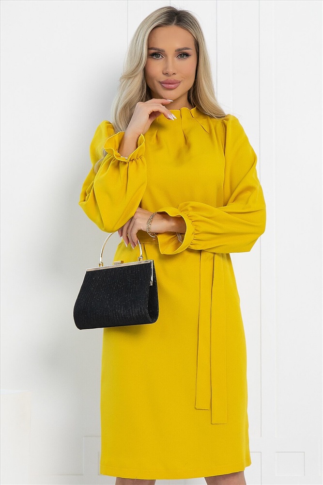 ID товара: 1113838 Состав: 100% Полиэстер Сезон: Весна/Лето Длина: длина до колен Фасон: Полуприлегающий Рукав: длинные Вырез горловины: Воротник-стойка Декоративные элементы: Пояс Основная ткань: Полиэстер Стиль: повседневный Страна бренда: Россия Артикул: П12962-36М. Тип ткани: синтетический. Состав: 100% полиэстер. Материал: креп стрейч "Булгари". Цвет: манго. Принт: отсутствует. Длина: миди. Вид застежки: молния. Силуэт: полуприлегающий. Карманы: отсутствуют. Подкладка: отсутствует. Декоративные элементы: отсутствуют. Длина по спинке от верхней точки плеча: 44-46/ 98 см, 48-50/ 100 см, 52/ 102 см, 54/ 104 см. Размер изделия на модели: 44 Рост модели: 168 см. Элегантное платье полуприлегающего силуэта — это то, что нужно для создания безупречного образа! Удобный пояс на талии, который можно завязать, подчеркнёт вашу фигуру. А молния по среднему шву на спинке сделает процесс надевания ещё проще. Втачные рукава с резинкой по низу добавят оригинальности вашему образу. А мягкие складки по горловине сделают его ещё более изысканным и неповторимым. Длина платья до колен позволяет носить его как на повседневные мероприятия, так и на более торжественные случаи. Это платье станет вашим фаворитом для создания стильного и женственного образа! Уход за изделием: ручная стирка до 30 градусов; нельзя отбеливать; отжим запрещён; гладить при t не более 110 С; гладить с изнанки. Внимание! Рекомендуем ориентироваться на размерную сетку и выбирать свой привычный размер, согласно размерной таблице. *Допуск отклонения длины при массовом производстве 1-3 см является нормой. Комментарии к товару