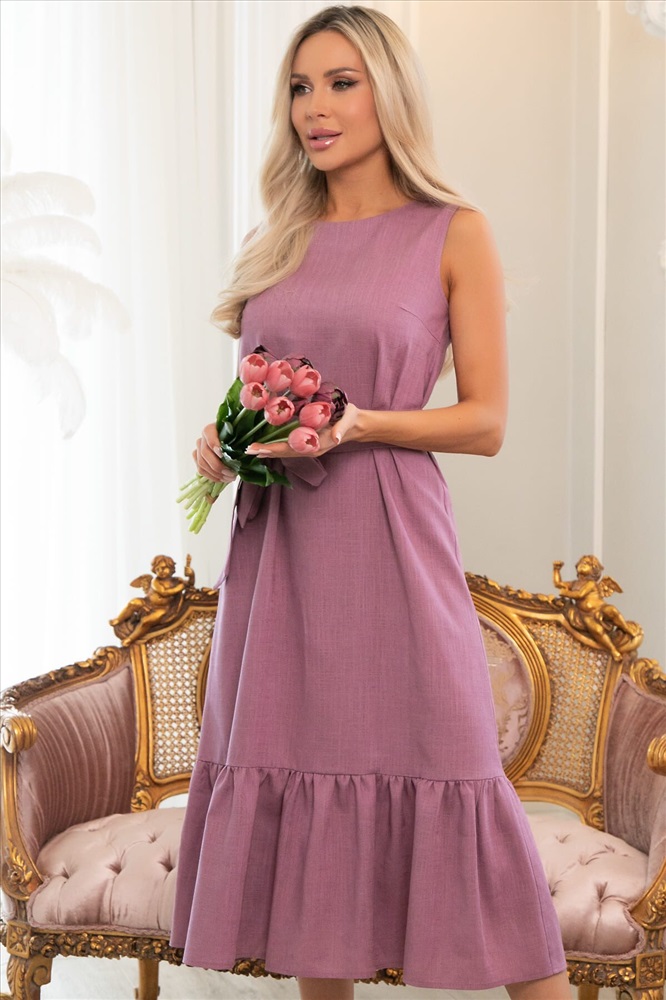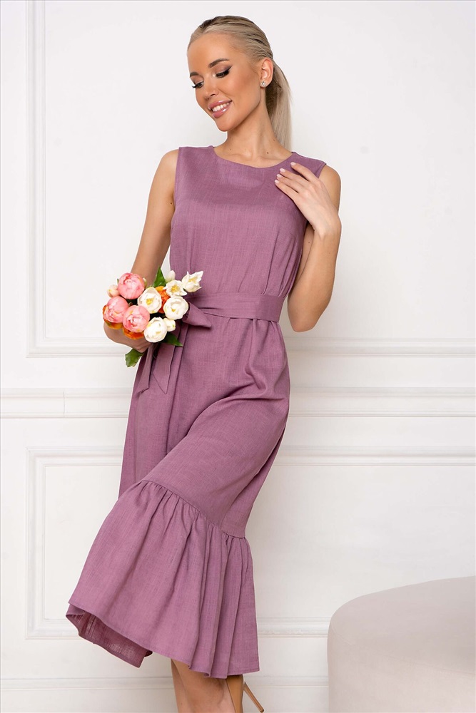 Состав: 65% лён, 35% вискоза. Материал: лён. Цвет: лавандово-розовый. Принт: отсутствует. Длина: макси. Силуэт: А-силуэт. Карманы: отсутствуют. Подкладка: отсутствует. Вид застежки: потайная молния. Декоративные элементы: волан по низу изделия, пояс из основной ткани в комплекте. Длина: 44-52/ 116 см.