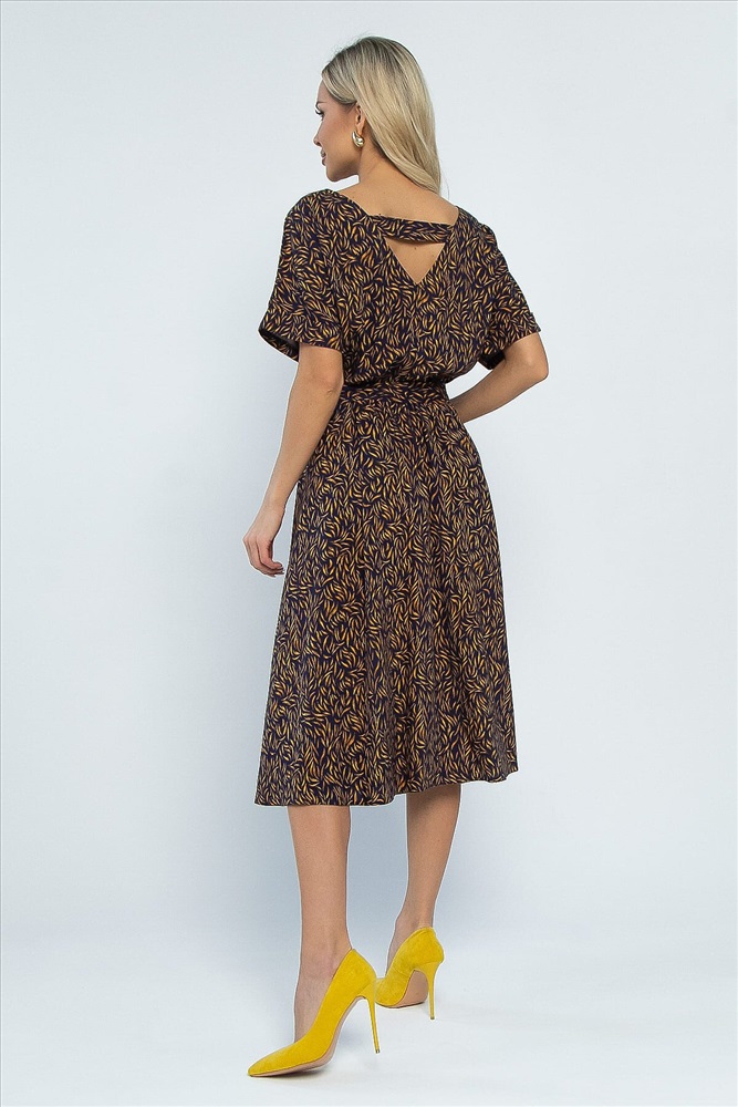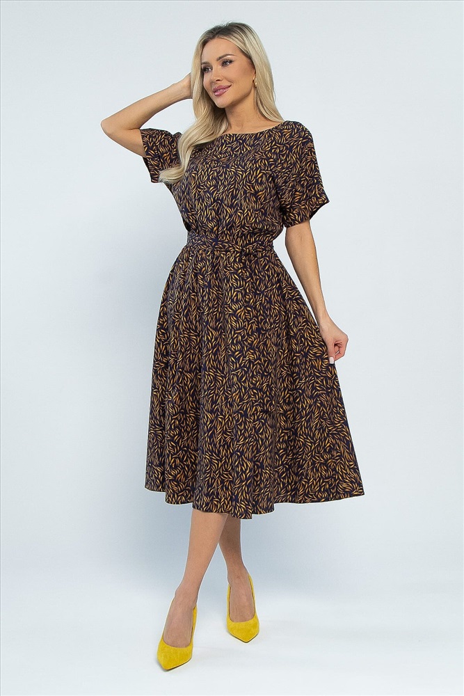 ID товара: 1118041 Состав: 100% Вискоза Сезон: Весна/Лето Длина: Миди Фасон: Приталенное Рукав: короткие Вырез горловины: Округлый Рисунок: растительный Декоративные элементы: Принт Основная ткань: Вискоза Стиль: повседневный Страна бренда: Россия Страна производства: Россия Состав: 100% вискоза. Материал: штапель. Цвет: синий. Принт: мелкие листочки жёлтого цвета. Длина: миди. Силуэт: полуприлегающий. Карманы: отсутствуют. Подкладка: отсутствует. Вид застежки: без застёжки. Декоративные элементы: отсутствуют. Длина: 46-48/ 114 см, 50-54/ 115 см. Элегантное платье с необычным принтом — идеальный выбор для создания нежного и романтичного образа! Спущенные рукава придают ему легкость и романтичность, а V-образный вырез сзади с планкой добавляет изюминку. Платье по талии на резинке. В комплект входит пояс из основной ткани, который станет отличным завершающим штрихом к вашему образу. Это платье будет уместно как на вечерней прогулке, так и на праздничном мероприятии. Уход за изделием: ручная стирка до 30 градусов; нельзя отбеливать; отжим запрещён; гладить при t не более 110 С; гладить с изнанки. Внимание! Рекомендуем ориентироваться на размерную сетку и выбирать свой привычный размер, согласно размерной таблице. *Допуск отклонения длины при массовом производстве 1-3 см является нормой. Комментарии к товару