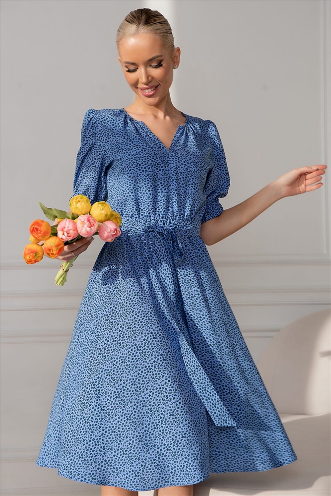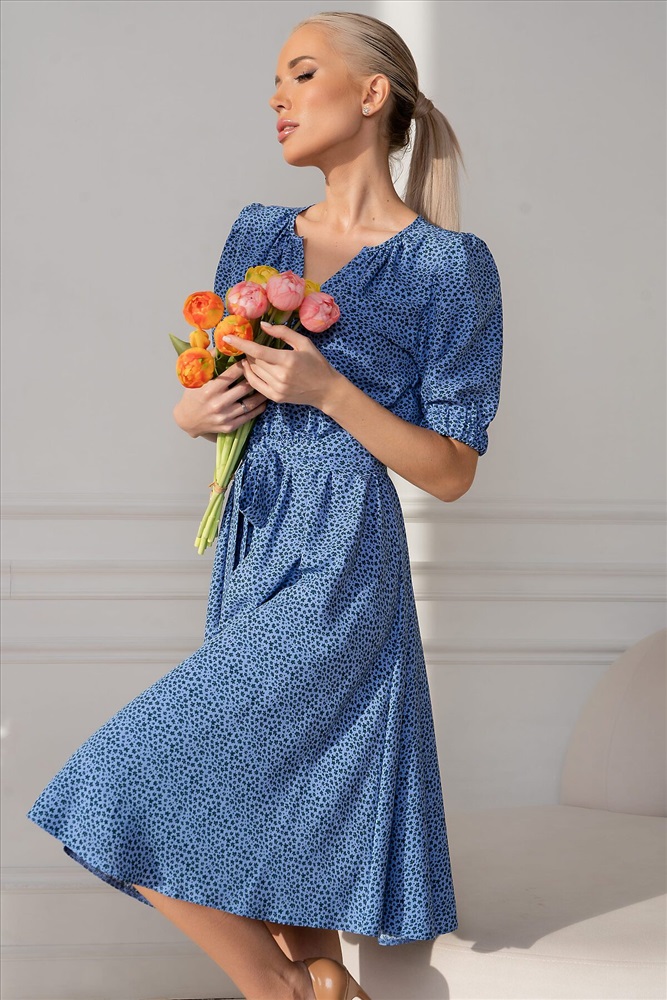 Изящное платье, сотканное из нежнейшей ткани штапель, станет воплощением легкости и женственности в вашем гардеробе. Легкий и дышащий материал идеально подходит для теплых дней, даря ощущение комфорта и свободы движений. Рукав, собранный на эластичную резинку, добавляет образу романтичности и кокетства. Он плавно облегает руку, не сковывая движений, и создает воздушный силуэт. Резинка позволяет регулировать длину рукава, подстраивая его под ваше настроение и погоду. Талия, подчеркнутая эластичной резинкой, формирует изящный силуэт, выгодно подчеркивая достоинства фигуры. Резинка обеспечивает комфортную посадку и свободу движений, не стесняя в течение дня. В комплекте с платьем идет элегантный поясок, который позволяет акцентировать талию и придать образу завершенность. Поясок можно завязать на бант или узел, создавая различные варианты стилизации. Он добавляет платью нотку изысканности и позволяет подчеркнуть индивидуальность. Это платье – идеальный выбор для тех, кто ценит комфорт, стиль и женственность. Оно подойдет как для повседневной носки, так и для особых случаев. Легкое, воздушное и невероятно красивое, оно станет вашим любимым нарядом.