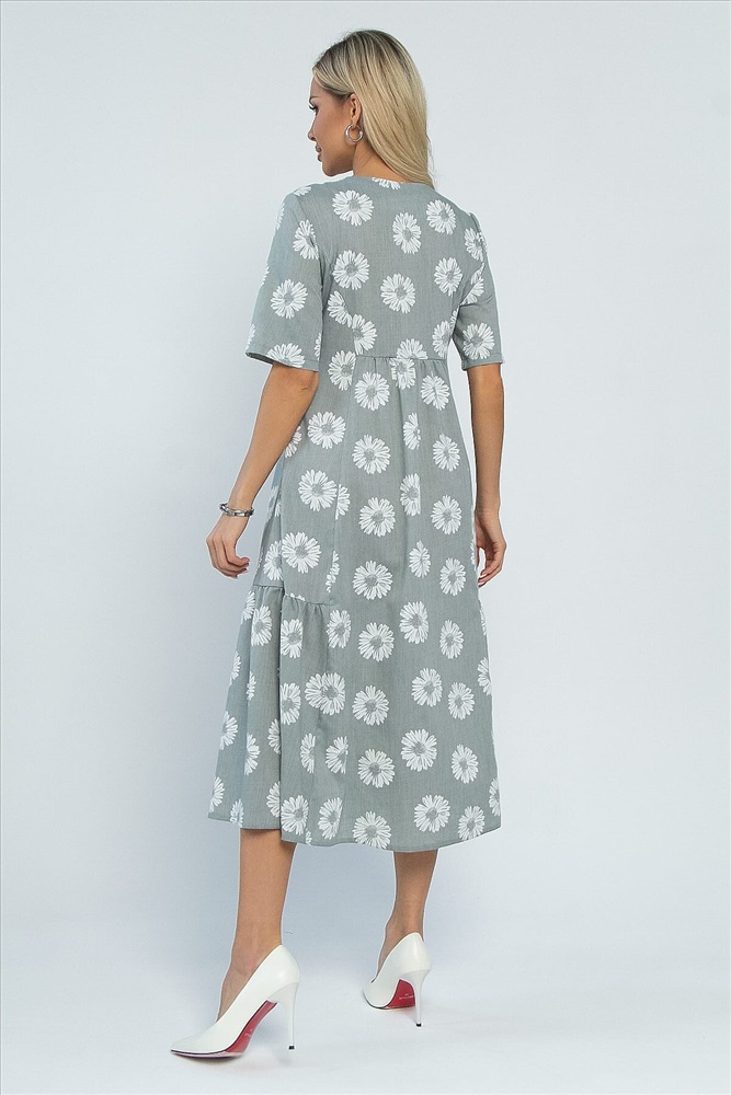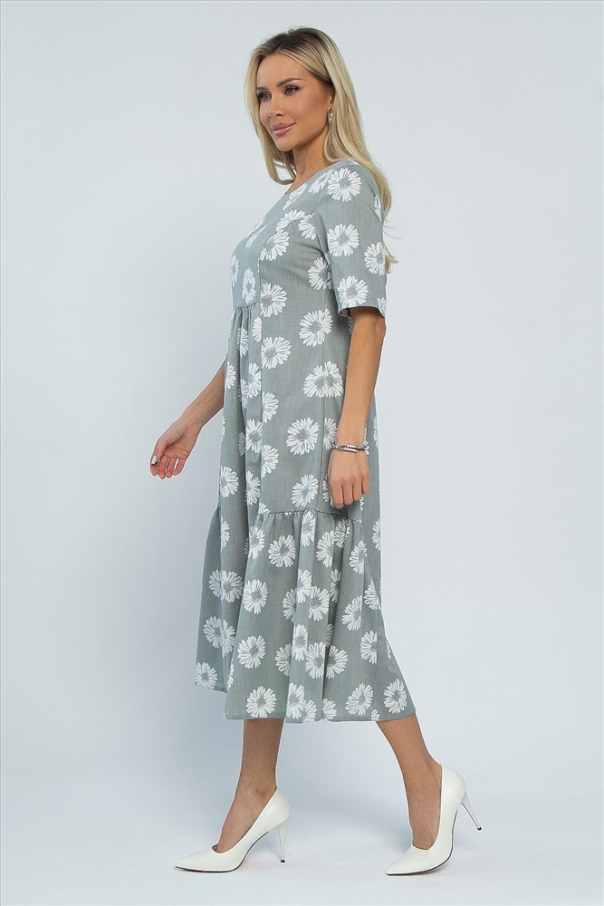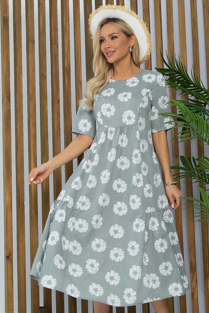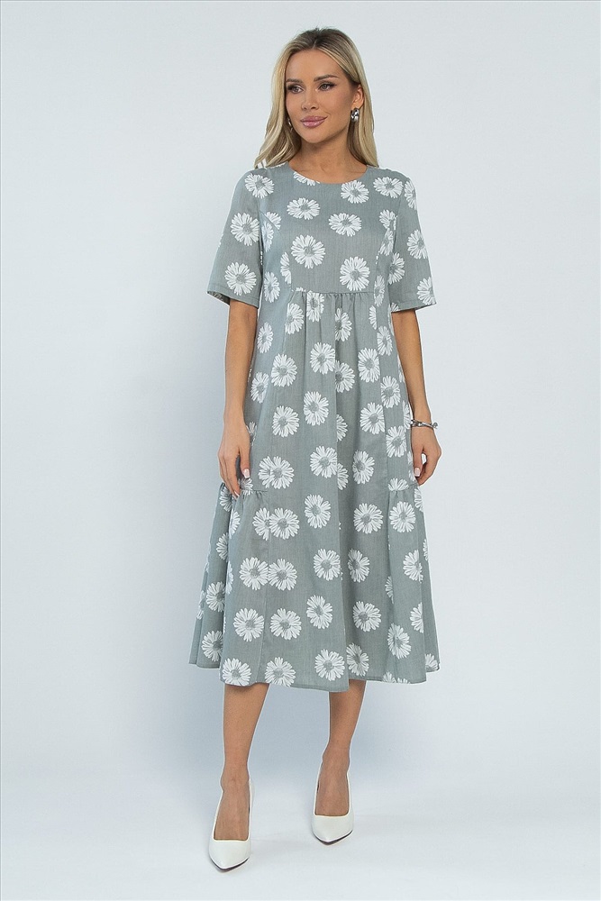 ID товара: 1118855 Состав: 70% Полиэстер, 30% Вискоза Сезон: Весна/Лето Длина: Миди Фасон: Свободный Рукав: Короткие Вырез горловины: Округлый Рисунок: цветочный Декоративные элементы: Принт Основная ткань: Полиэстер Стиль: Романтический Страна бренда: Россия Страна производства: Россия Состав: 70% полиэстер, 30% вискоза. Материал: плательный. Цвет: мятный. Принт: цветочный (ромашки). Длина: миди. Силуэт: свободный. Карманы: отсутствуют. Подкладка: отсутствует. Вид застежки: без застёжки. Декоративные элементы: отсутствуют. Длина: 44/ 114 см, 46/ 115 см, 48/ 116 см, 50/ 117 см, 52/ 118 см, 54/ 119 см, 56/ 120 см. Платье свободного кроя средней длины — это прекрасный выбор для создания стильного и комфортного летнего образа! Его округлая горловина и втачные рукава средней длины придают платью изысканность. Платье расширяется к низу от линии груди, создавая нежный и воздушный силуэт. Декоративные элементы в виде сборок по бокам и чуть ниже линии груди спереди и сзади придают ему неповторимую изюминку. Это платье станет настоящим украшением вашего гардероба! Уход за изделием: ручная стирка до 30 градусов; нельзя отбеливать; отжим запрещён; гладить при t не более 110 С; гладить с изнанки. Внимание! Рекомендуем ориентироваться на размерную сетку и выбирать свой привычный размер, согласно размерной таблице. *Допуск отклонения длины при массовом производстве 1-3 см является нормой. Комментарии к товару