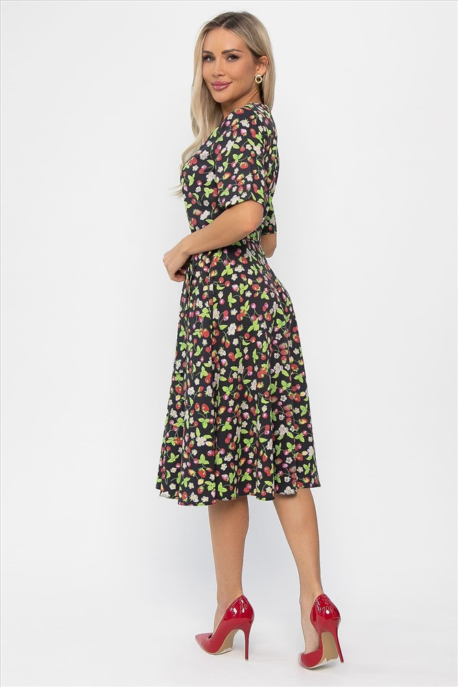 ID товара: 1126329 Состав: 65% Полиэстер, 30% Вискоза, 5% Эластан Сезон: Весна/Лето Длина: Миди Фасон: Приталенное Рукав: короткие Вид застежки: Молния Вырез горловины: Округлый Рисунок: Фрукты Тип карманов: В шве Декоративные элементы: Пояс Основная ткань: Полиэстер Стиль: повседневный Страна бренда: Россия Страна производства: Россия Состав : 65% полиэстер, 30% вискоза, 5% эластан Материал : плательный джинс-лайт Цвет : Черный Принт : ягоды Длина : миди Силуэт : приталенный Карманы : Есть Подкладка : Отсутствует Вид застежки : молния Декоративные элементы : пояс в комплекте Длина : 44-110 см, 46-110 см, 48-110 см, 50-110 см, 52-110 см, 54-110 см. Изящное летнее платье из смесовой ткани с сатиновым плетением идеально подходит для жарких дней. Оно дополнено удобными карманами в боковых швах и стильной деталью — поясом из основной ткани, который акцентирует талию и придает образу особый шарм. Создайте непринужденный и утонченный летний стиль с этим комфортным и элегантным платьем! Внимание! Рекомендуем ориентироваться на размерную сетку и выбирать свой привычный размер, согласно размерной таблице. *Допуск отклонения длины при массовом производстве 1-3 см является нормой. Уход за изделием: Ручная стирка или стирка в машине при температуре до 30 °C, деликатный режим. Не использовать отбеливатели. Разрешена глажка при температуре до 110 °C. При глажке использовать специальную насадку на подошве утюга, гладить с паром. Не замачивать и не выжимать. Стирать изделие наизнанку, отдельно от других вещей. Комментарии к товару