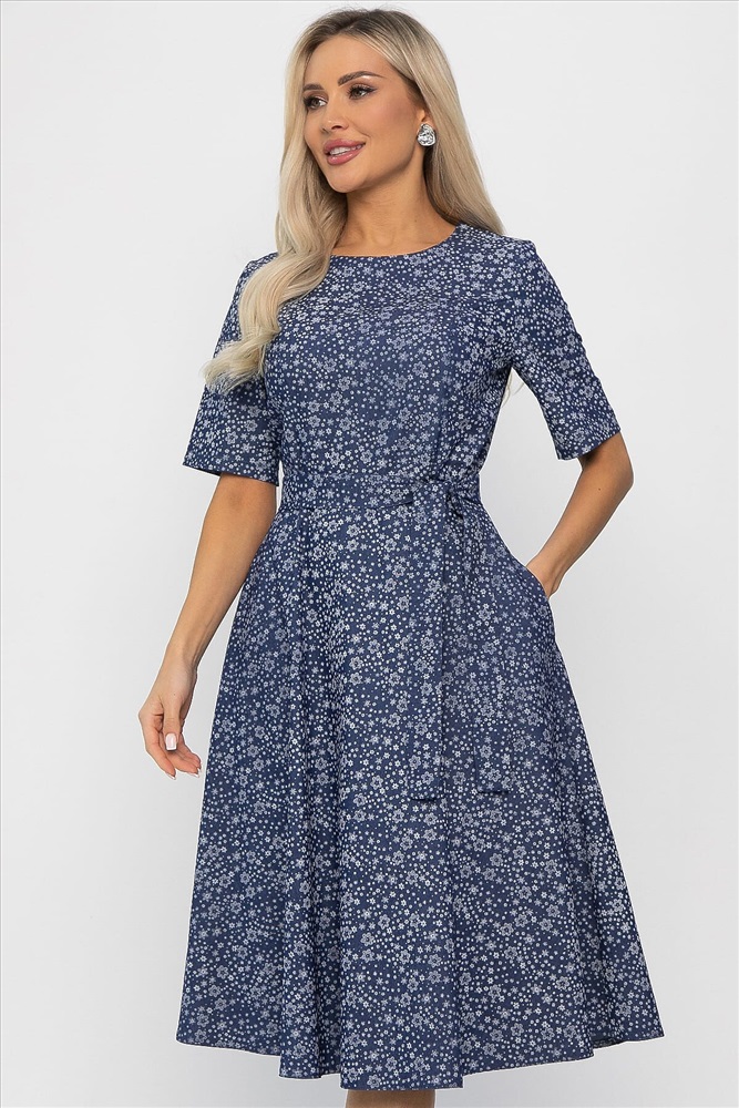 Состав : 65% полиэстер, 30% вискоза, 5% эластан Материал : джинс лайт Цвет : Синий Принт : маленькие цветы Длина : миди Силуэт : приталенный Карманы : Есть Подкладка : Отсутствует Вид застежки : молния Декоративные элементы : пояс в комплекте Длина : 44-110 см, 46-110 см, 48-110 см, 50-110 см, 52-110 см, 54-110 см.