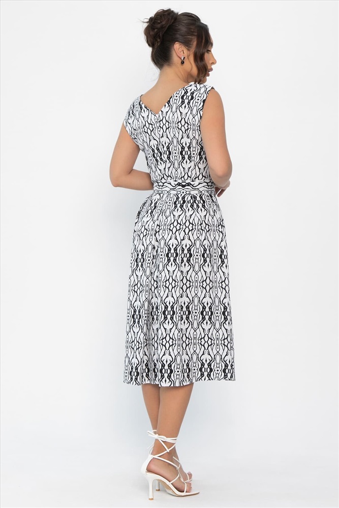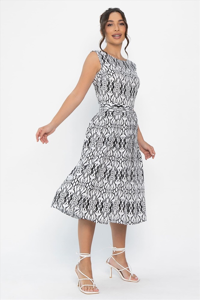 Платье-сарафан в чёрно-белой гамме — это стильное решение для создания женственных и комфортных образов. Благодаря отсутствию рукавов, вы будете чувствовать себя свободно и комфортно, а пояс, входящий в комплект, поможет подчеркнуть талию. Это платье — отличный выбор для тех, кто ищет сочетание простоты, элегантности и привлекательности в повседневной одежде или на особых мероприятиях.